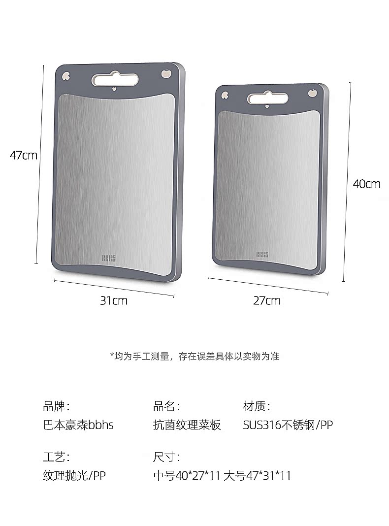 【德国品牌,抗菌去腥】真304食品级不锈钢,全钢一体锻造,不易发霉不易裂不藏污,健康安全,让家人放心,无异味易清洗,切水果/蔬菜不打滑,家居厨房必备~