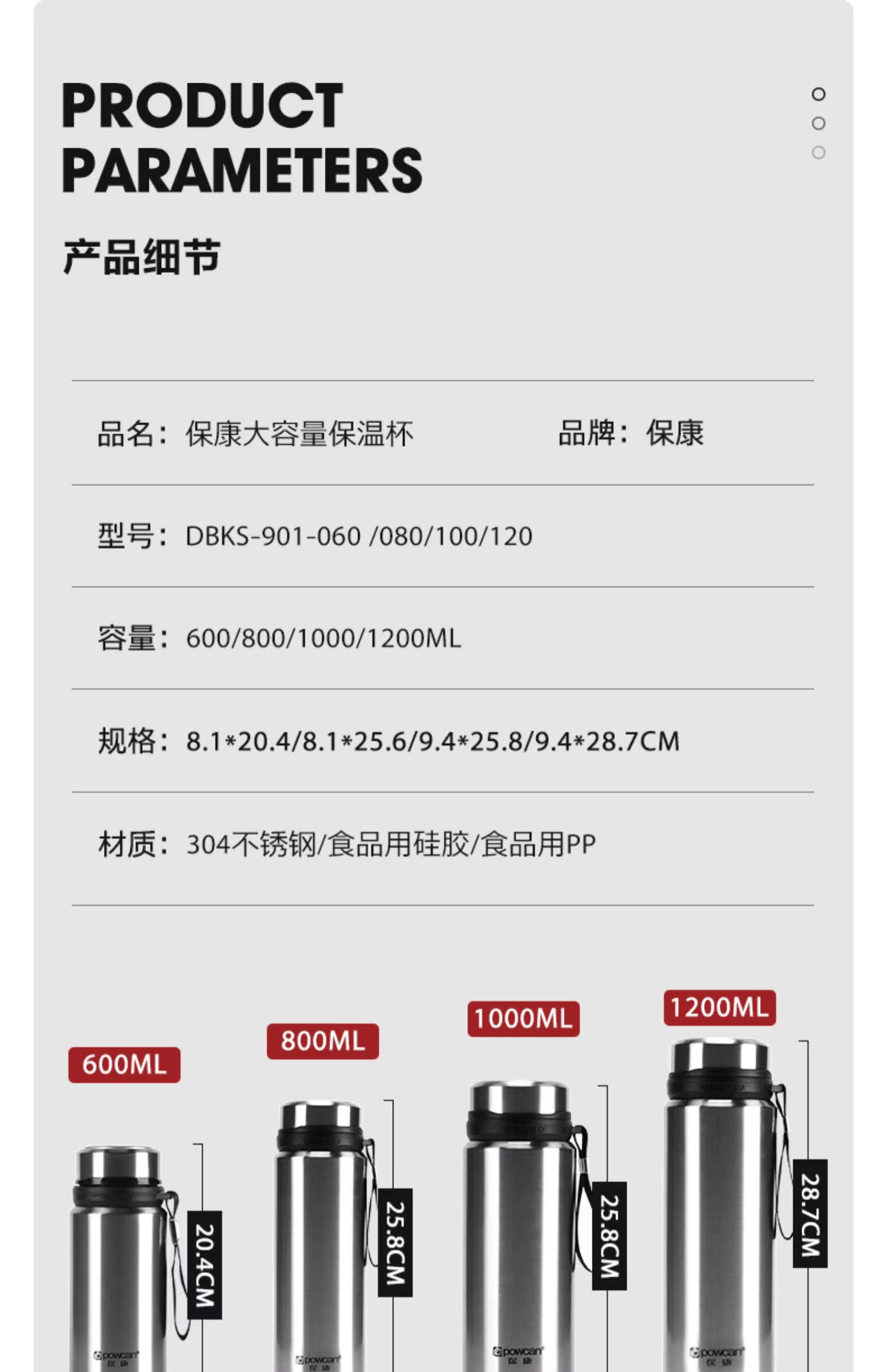 304不锈钢内胆,双真空保温,48小时长效保温,一壶双盖,防摔不漏水!冬天装个开水,第二天还烫嘴~户外,车载,家用都方便【赠运费险】
