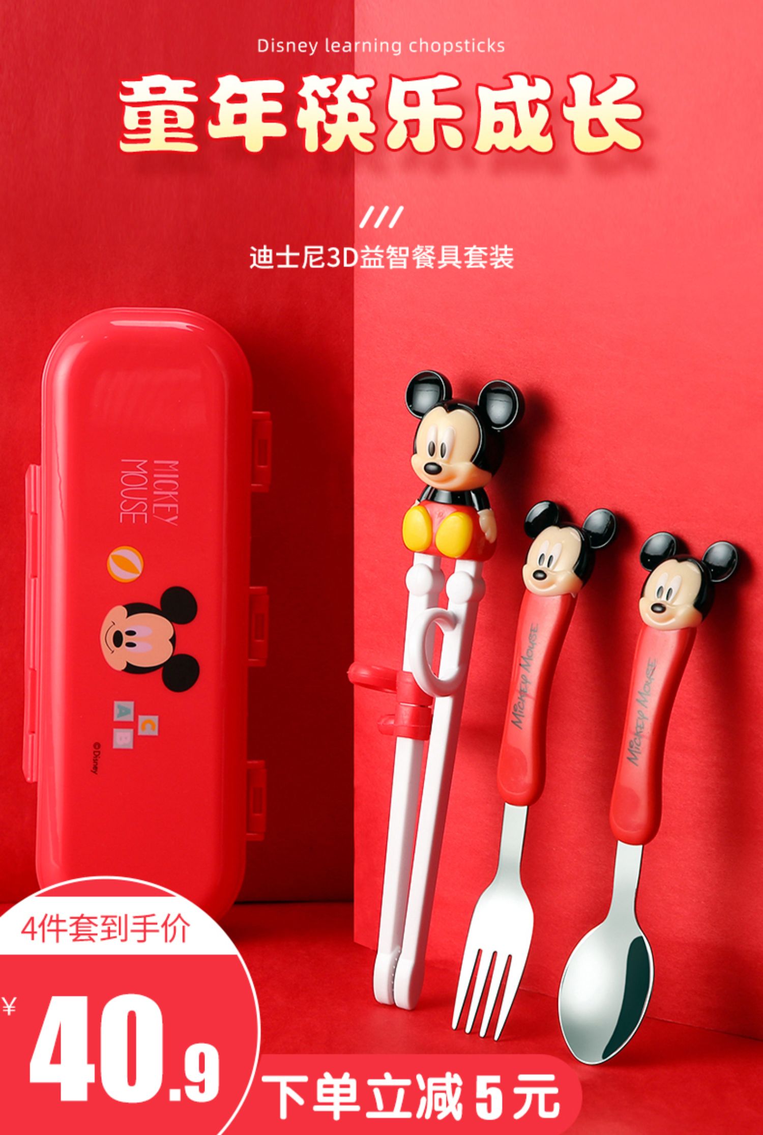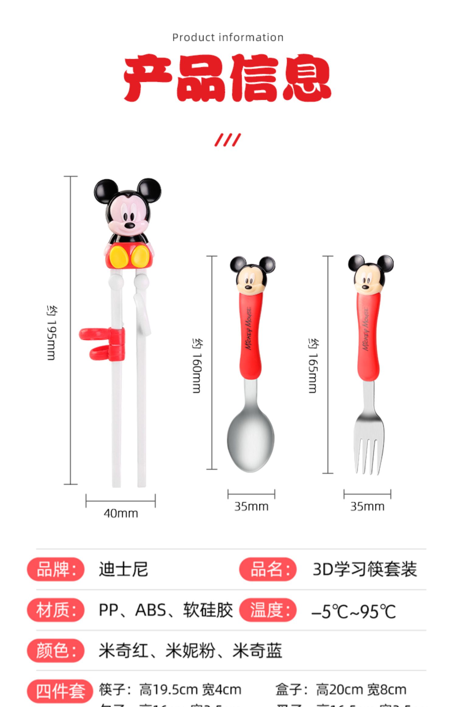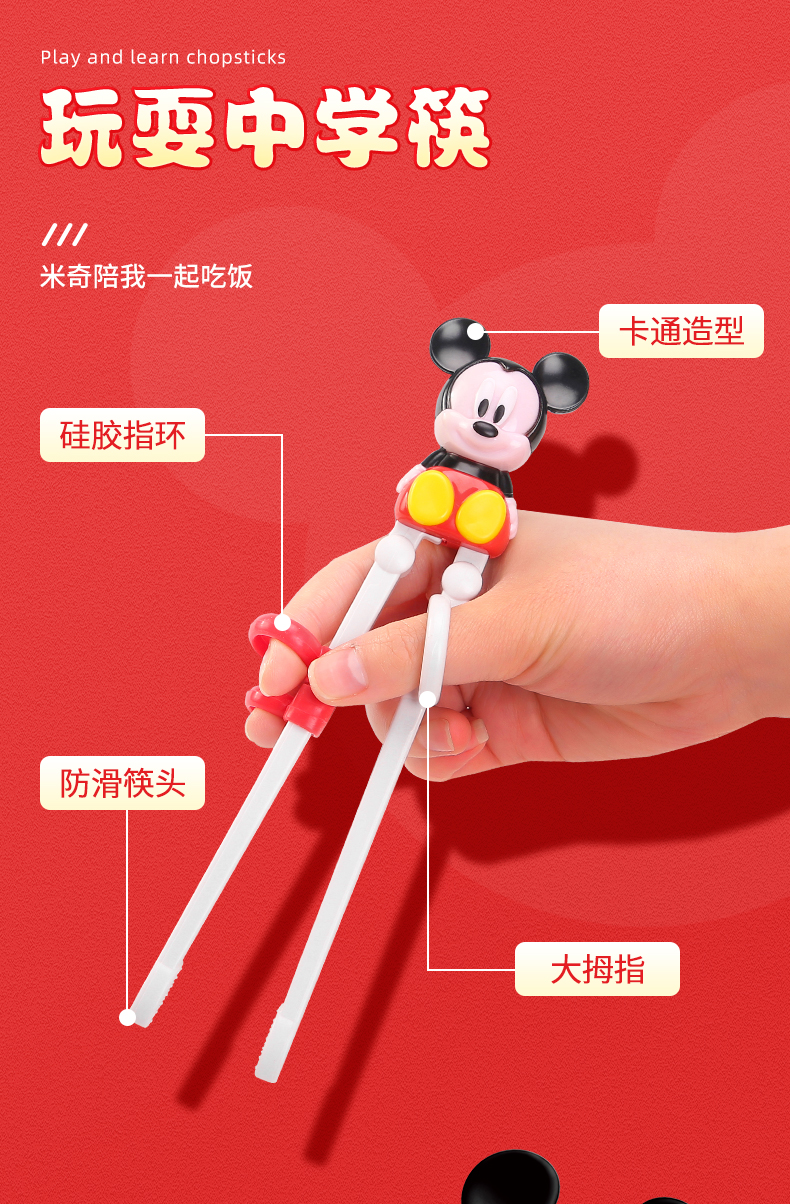 迪士尼儿童练习筷,全筷圆滑设计,ABS食品级安全材料。高韧抗摔,不易变形,萌趣卡通造型,宝宝爱不释手,可调节指环,锻炼宝宝精细化操作,轻松学筷!【赠送运费险】
