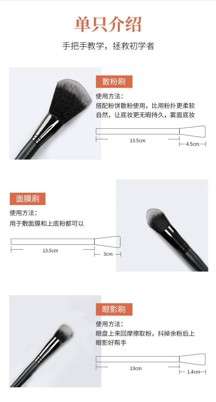 快速上妆,新手福音,触感非常软糯温柔,笔刷蓬松毛量丰富,毛尖波浪设计,触感舒适柔软,抓粉力好,贴合眼型轮廓,上色晕染自然,打造精致妆容一套搞定,让你的美‘得心应手’。