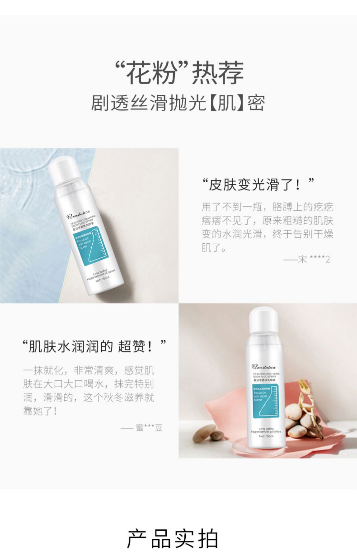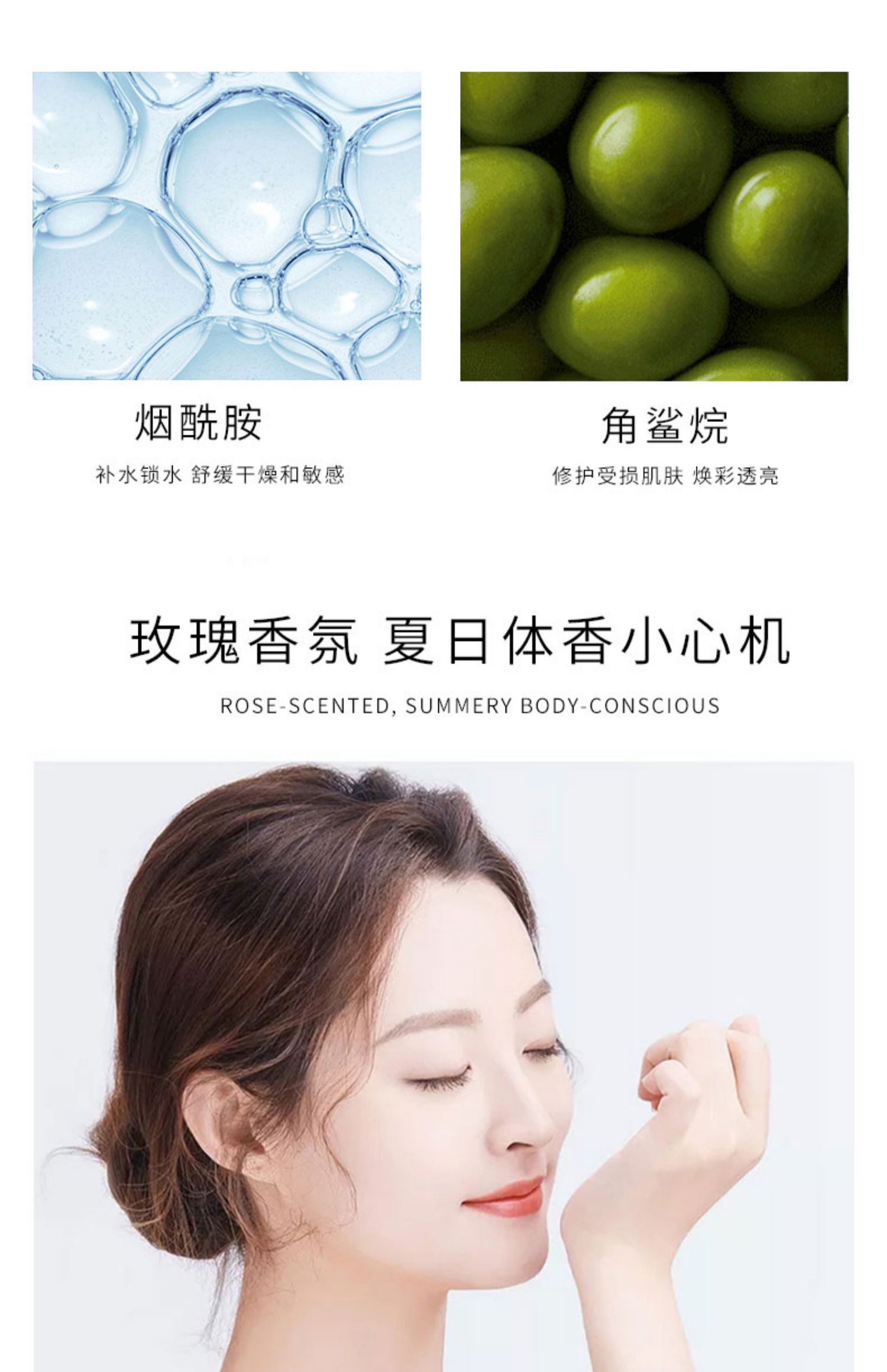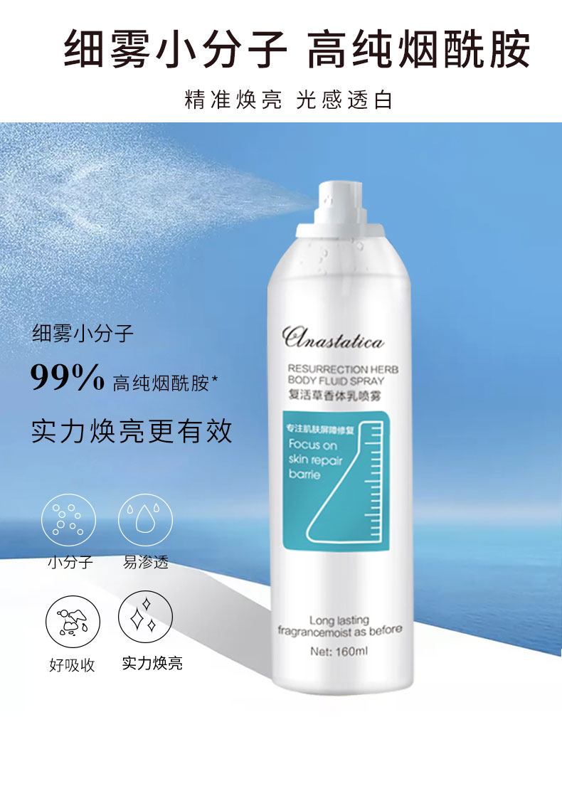 喷雾补水保湿身体乳,持久留香,去鸡皮提亮肤色,72h保湿水润,不伤肤质,随时补水,舒缓敏感晒后修护,让肌肤一整天都光滑怡人清香,一喷娇嫩,亮肤光滑