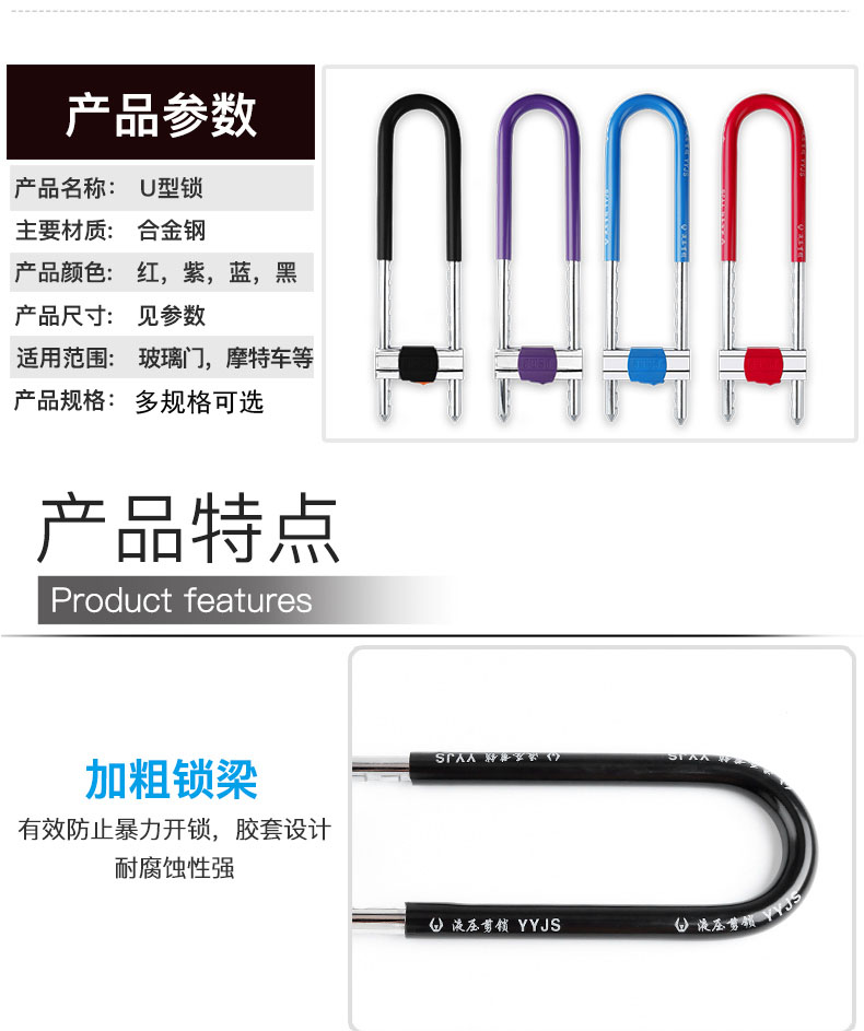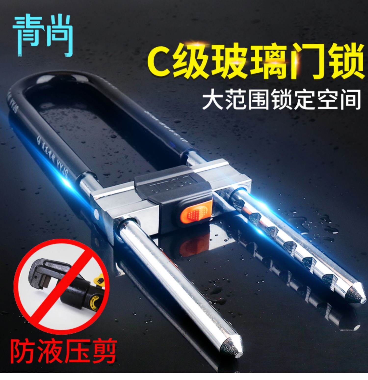 青尚玻璃门锁双门U型锁商铺门插锁防盗锁,10级锁牙,大范围锁定空间,合金钢实心锁体采用镀铬工艺防锈性好,硬度高,抗液压剪安全实用,真正防盗,多用途,功能强大,多规格多色可选,掌柜力荐哦!