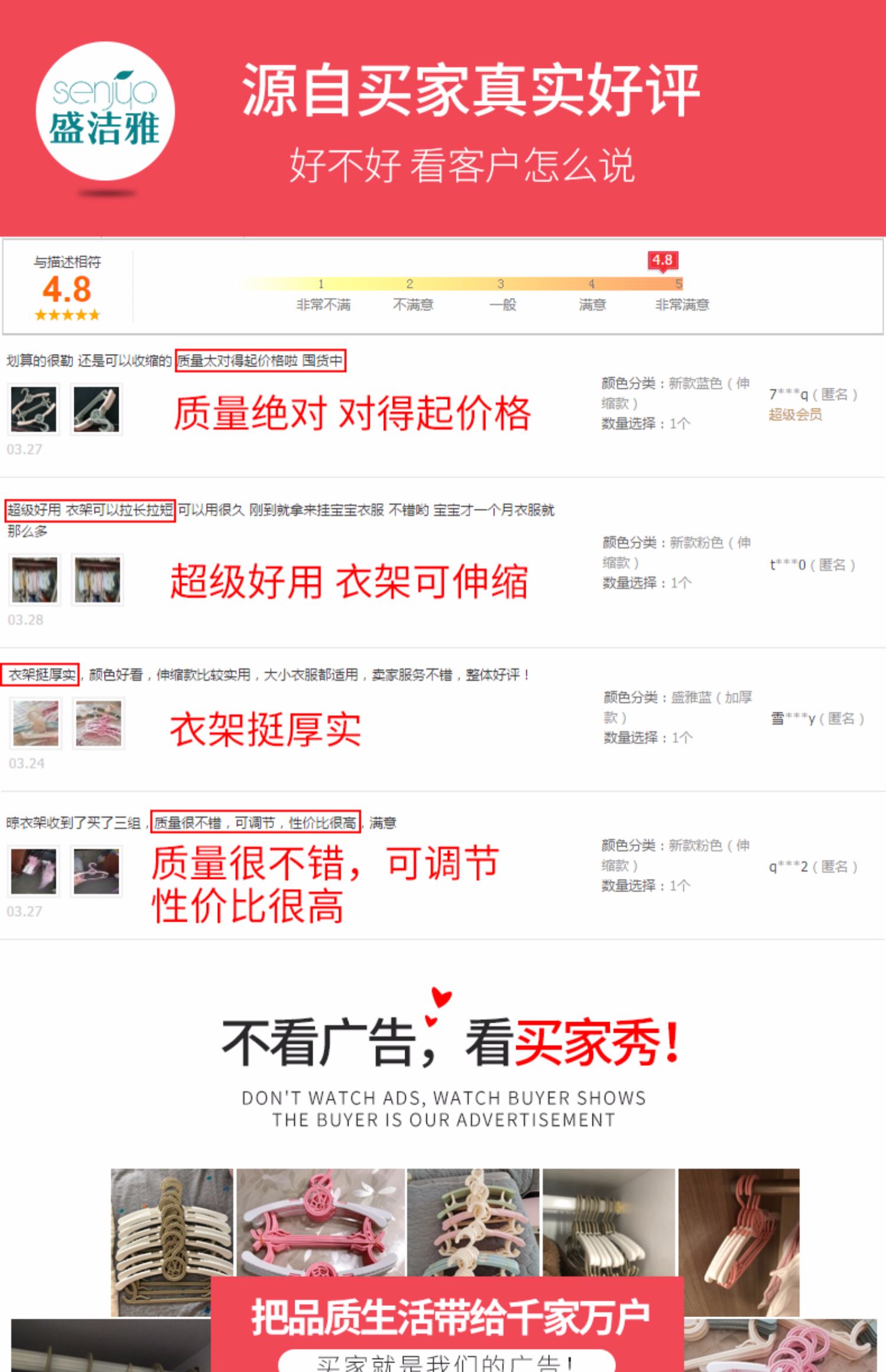 【超值10支!口碑炸裂】和奶瓶一样安全的PP材质,不含荧光剂,色泽光亮,韧性超好!适宜宝宝不同大小衣物,防滑不掉落,更有超强承重!