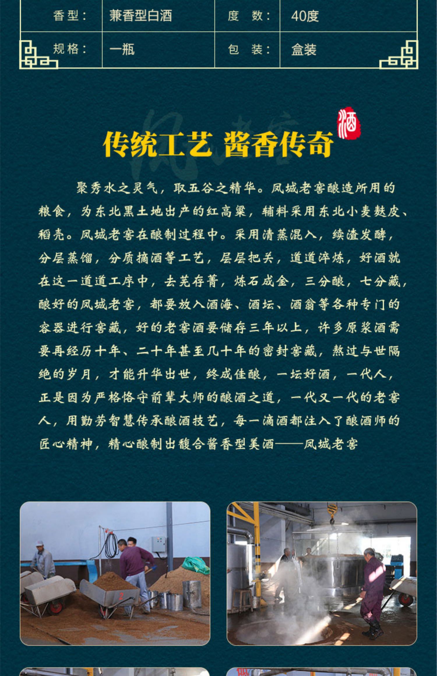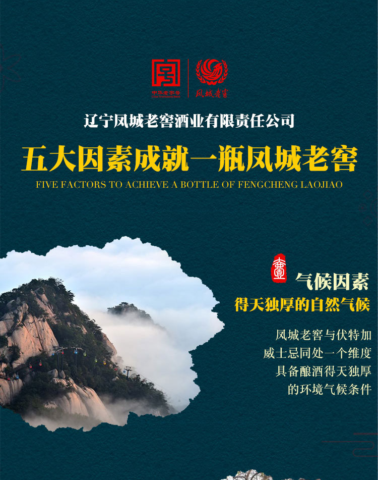 【凤城老窖】官方旗舰店。与伏特加威士忌同处一个维度具备酿酒得天独厚的环境气候条件。品质泉水,古老窖池。原料选配东北红高粱淀粉高。