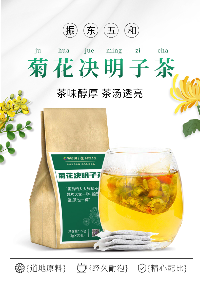 振东五和!上市企业有保障!菊花决明子茶,精选食材搭配而成,低温烘培,茶味醇厚,调节身体,赶走湿胖,携带方便,即泡即饮,老少皆宜,每天一杯,强身养颜!【赠运费险】