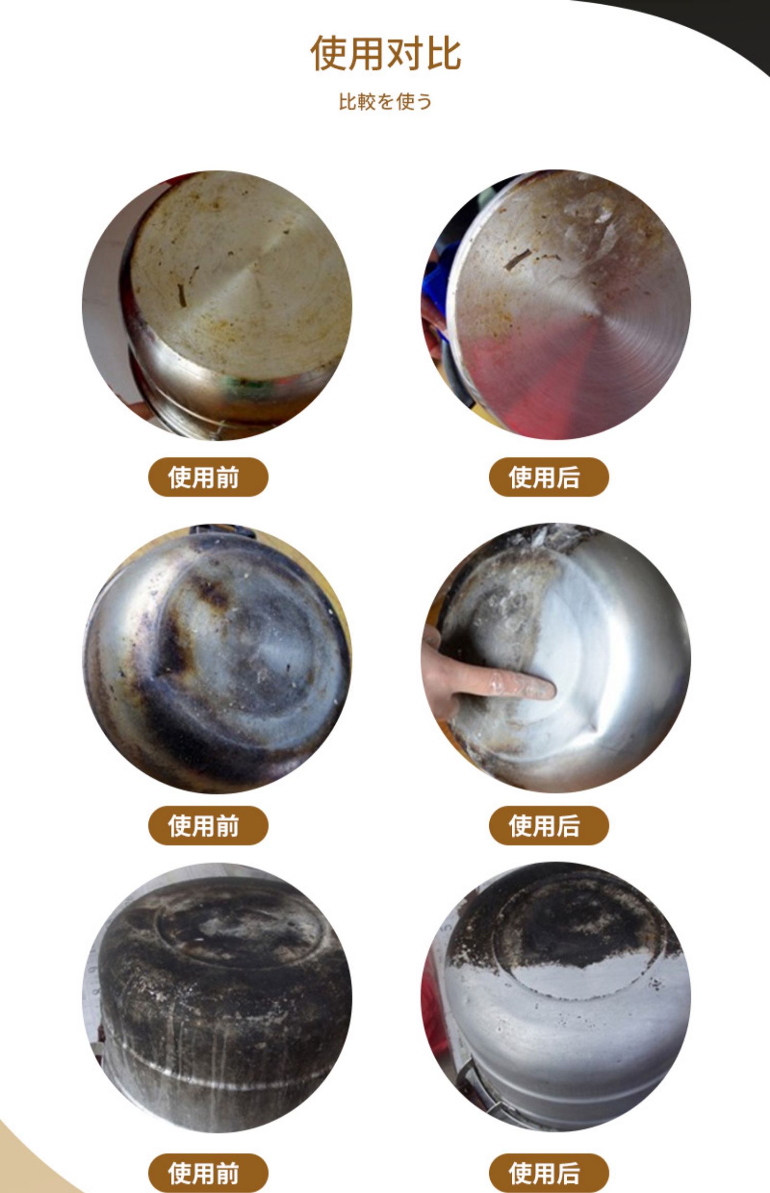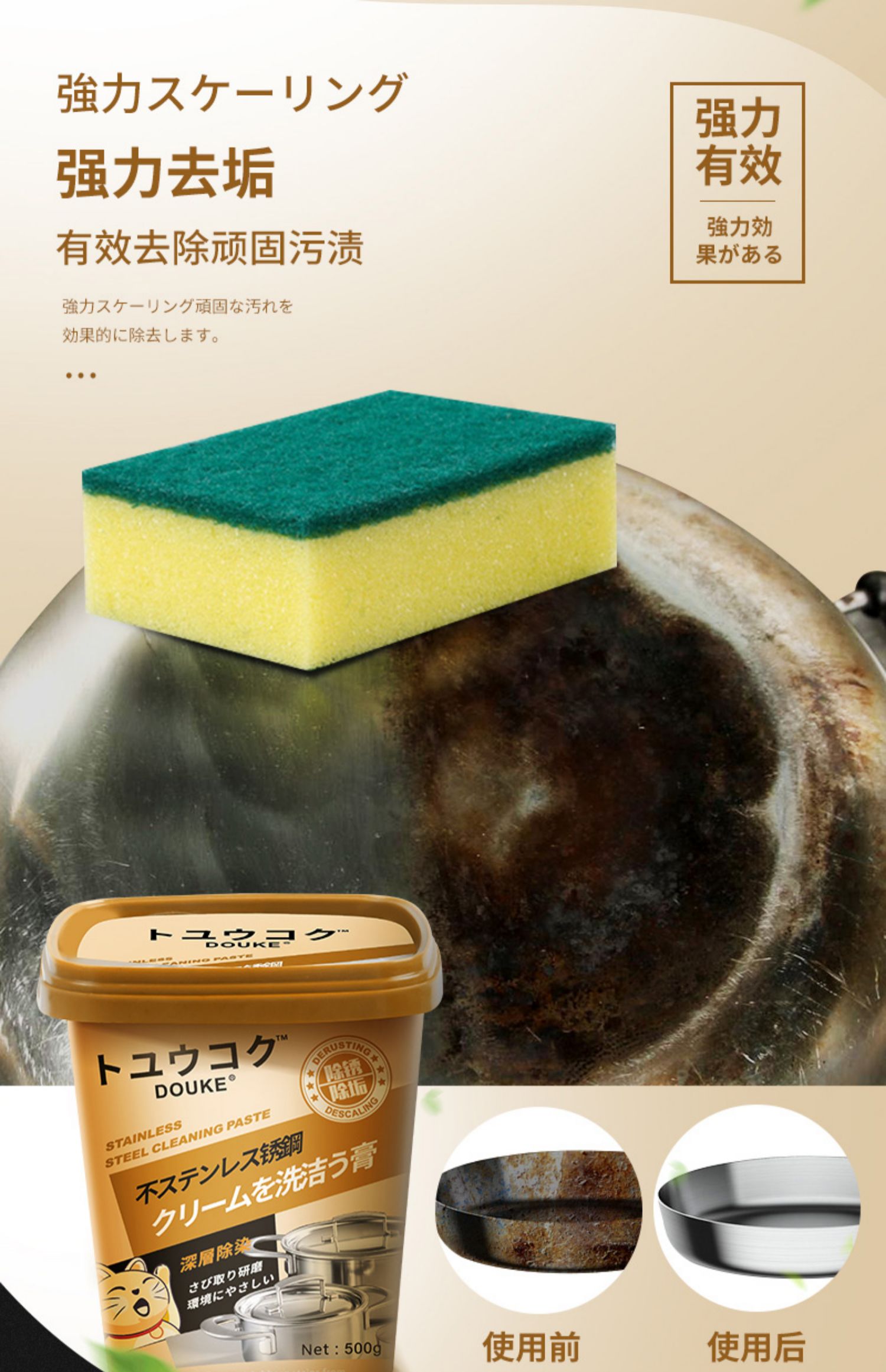 【买就送百洁布,买2送6】【正品保证】日本不锈钢清洁膏锅底,强力去除厨房油污,除锈蚀,除烧黑,除焦渍,除锅底黑垢,立竿见影,让不锈钢重换新生,光亮如新,告别划痕。安全环保,不伤手。