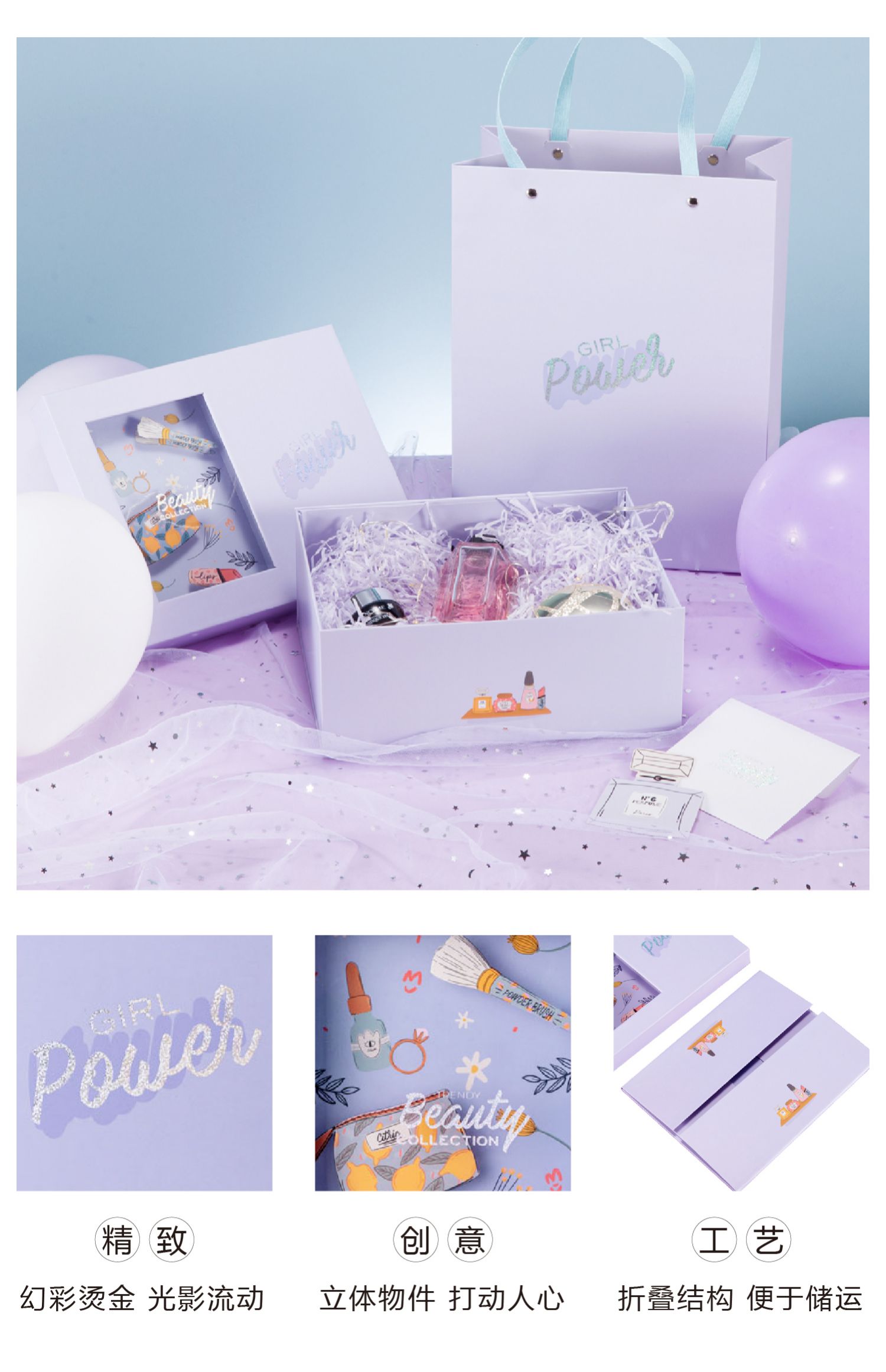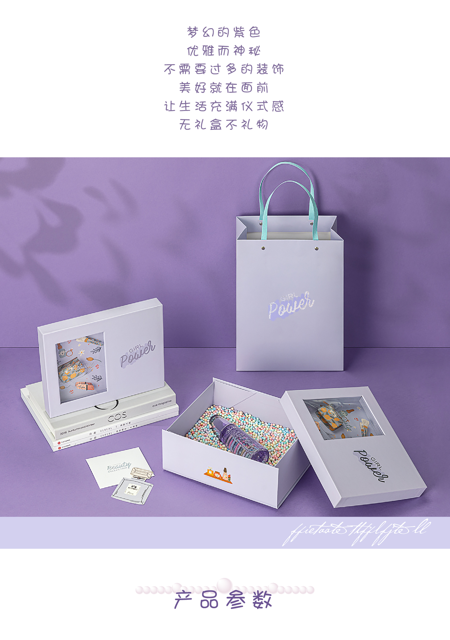 【礼盒+礼袋+拉菲草+灯串】清新INS风紫色中秋化妆品礼物盒,可放口红香水钱包丝巾等,送朋友、闺蜜礼物盒,生日礼物包装盒,多种款式可选择,随心选择~