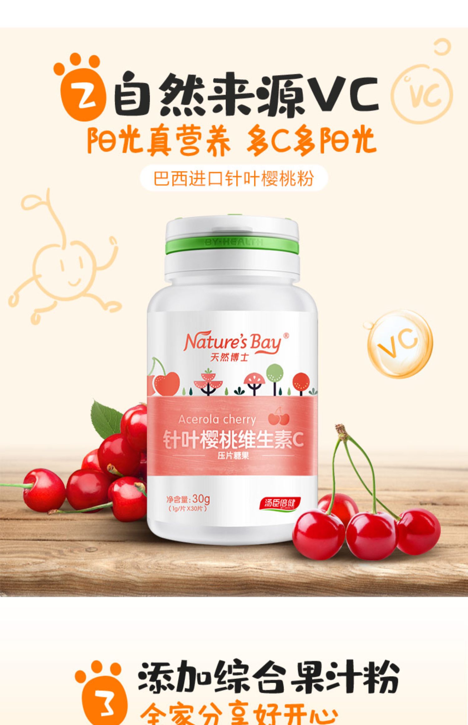 汤臣倍健高端系列!天然樱桃粉0添加合成!这个维生素超好吃的!酸酸甜甜的,每天来一片,美容抗衰老,抗病毒还能提高免疫力哟