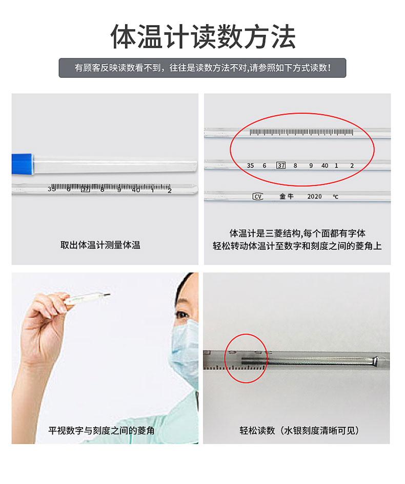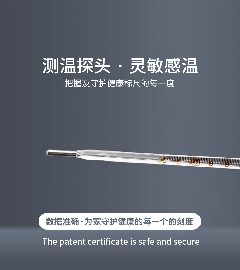 大刻度水银体温计家用成人儿童婴儿玻璃温度计,测量准确,读数清晰,医院同款