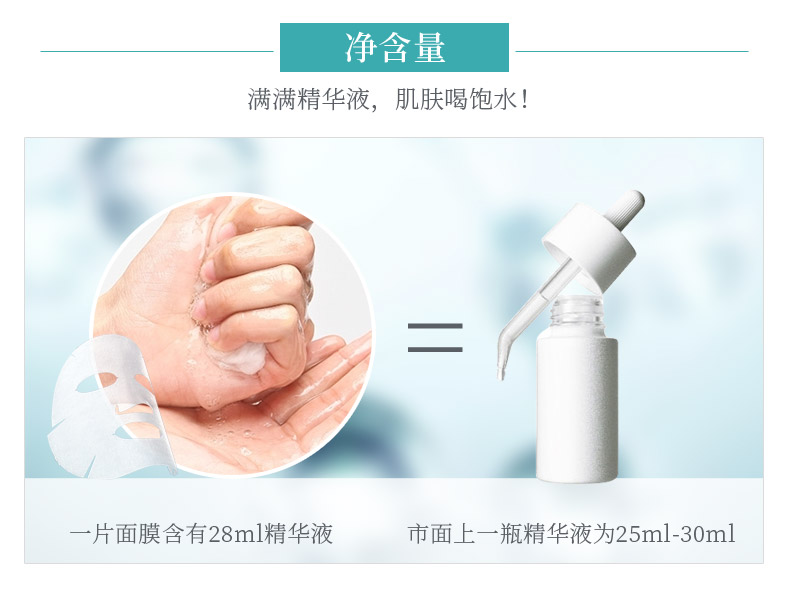 烟酰胺补水保湿面膜、紧密贴合肌肤,轻薄柔软,不易撕破,蕴含丰富水分和营养,呵护敏弱肌肤,针对祛痘除印、晒后修复效果佳!补水保湿,对缓解刺激过敏也非常有效!
