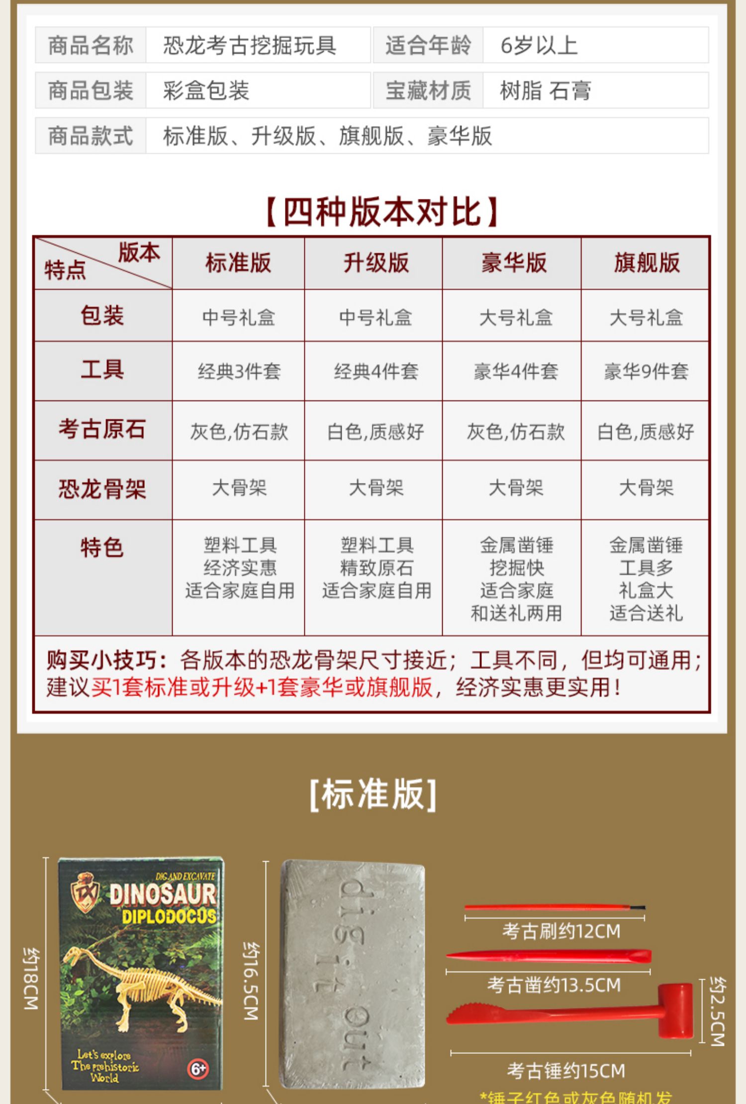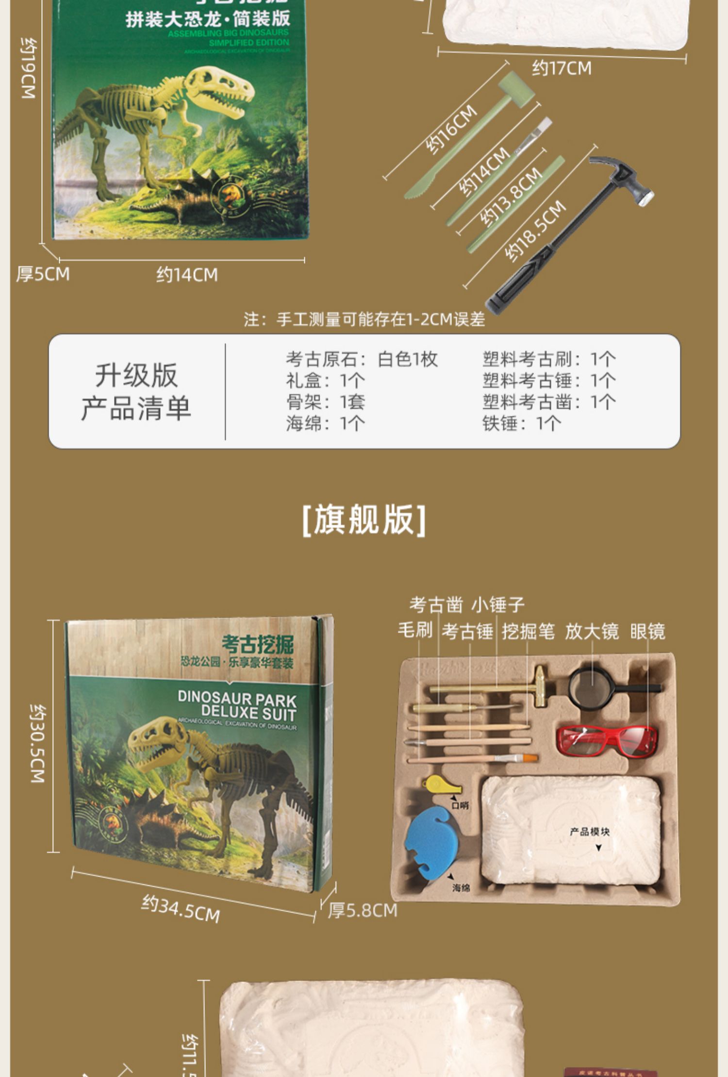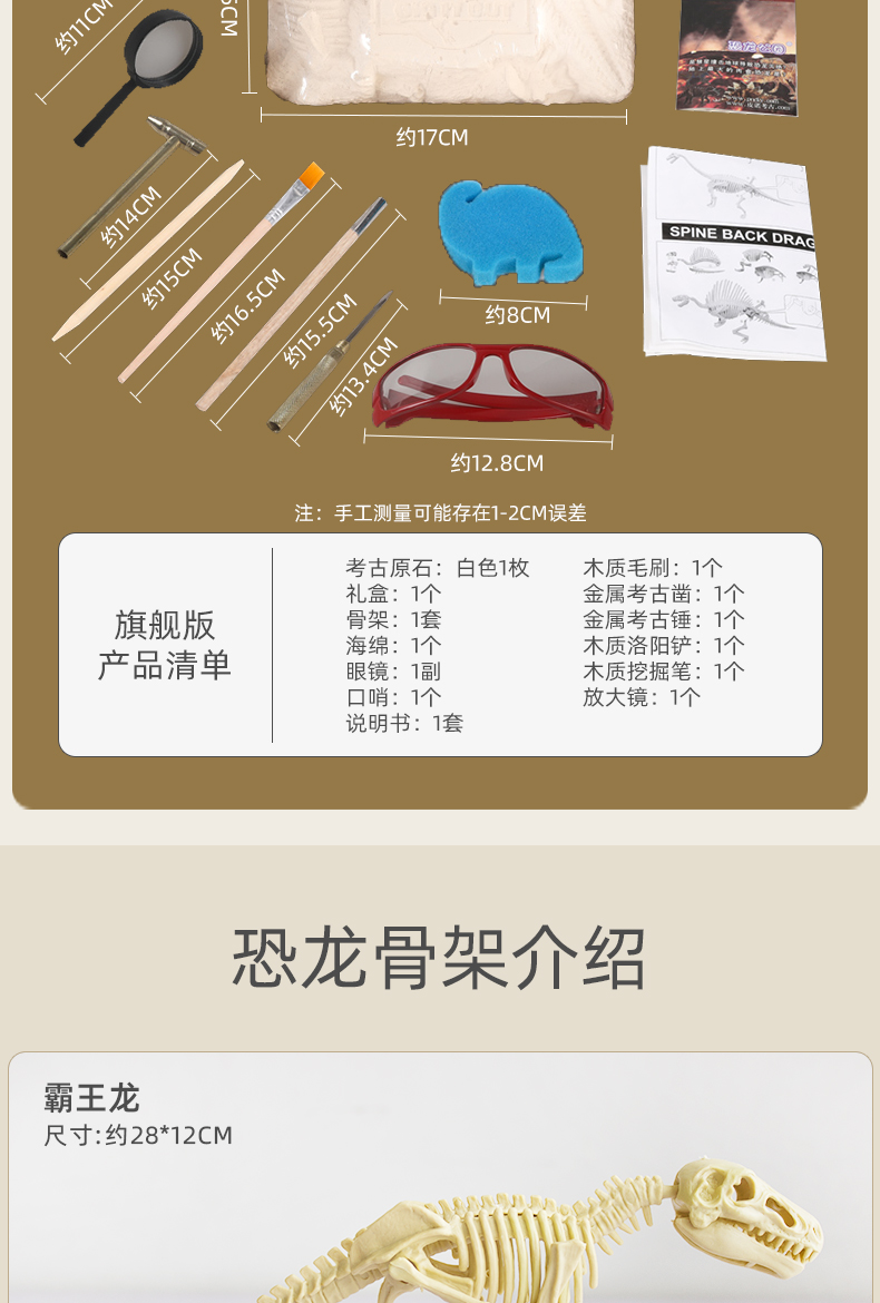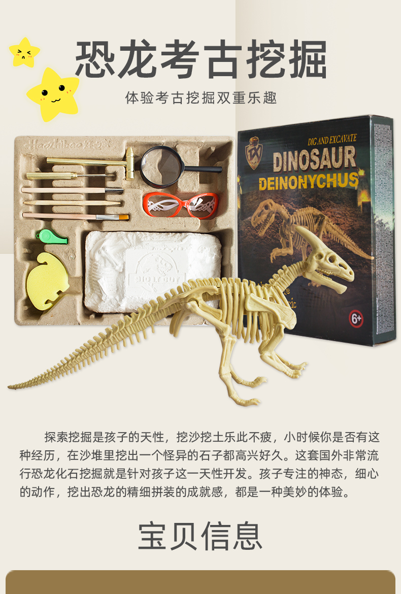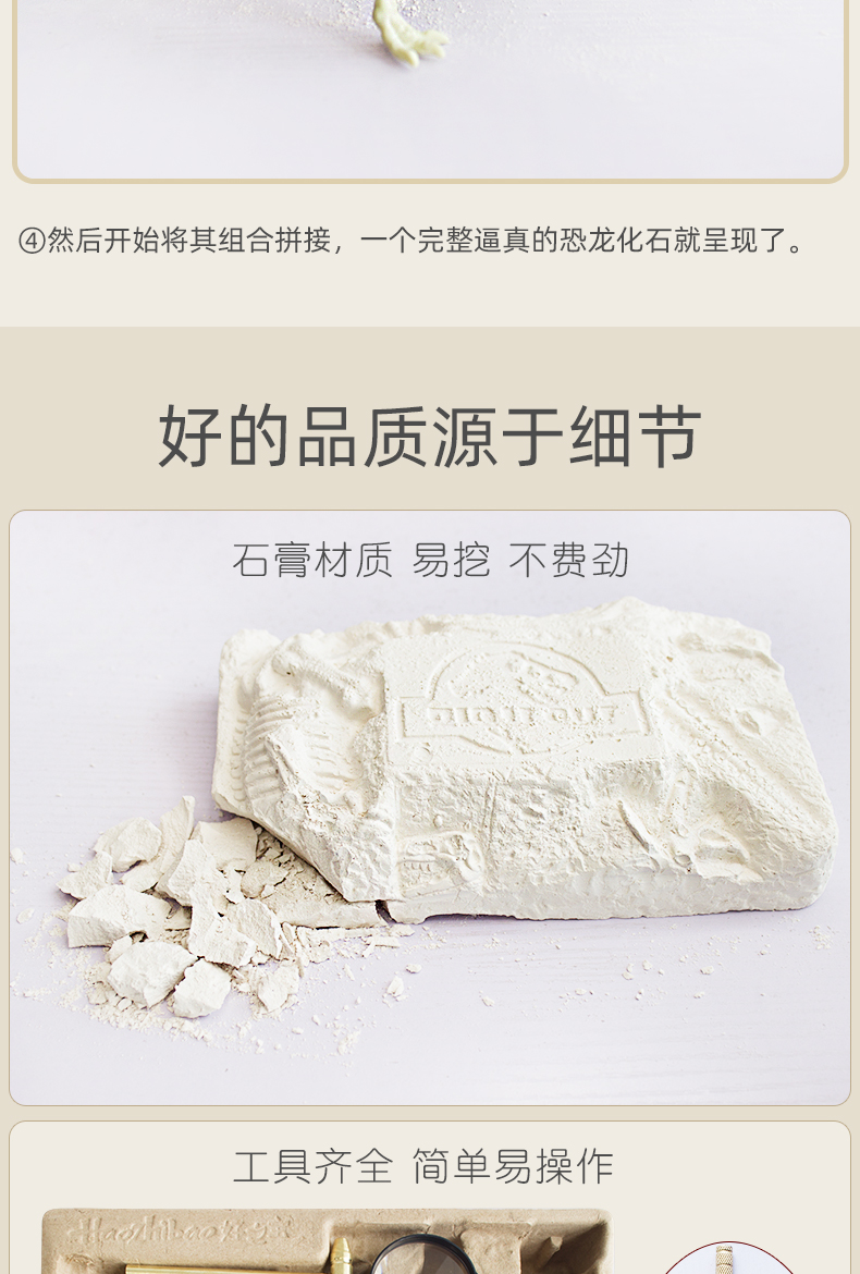 正品保证!【买就送手套,桌布,放大镜,海绵,围裙】第2件减5元,加送一个恐龙蛋!儿童DIY考古挖掘恐龙化石,侏罗纪霸王龙拼接骨架模型,培养孩子专注力观察力,通过国家3c认证,放心安全玩!
