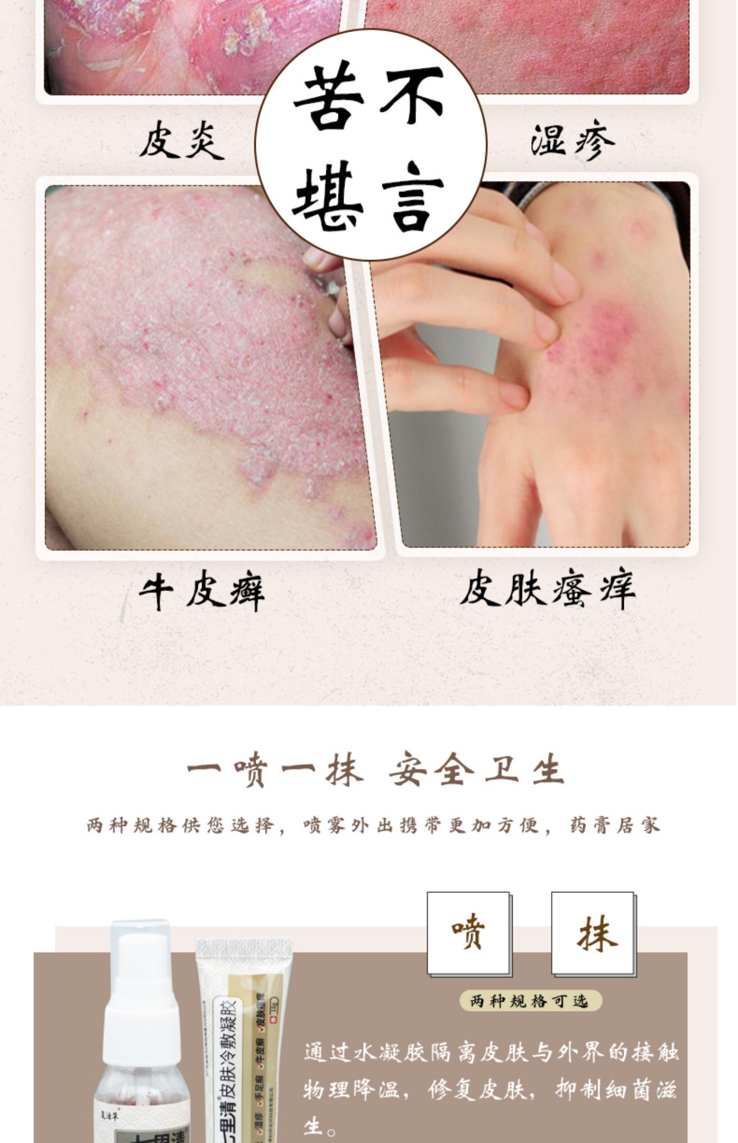 【买2送1】七里清冷敷凝胶,适用于皮炎、湿疹、手足癣、牛皮癣、皮肤瘙痒等皮肤部位的冷敷辅助治疗,物理降温,修复皮肤,抑制细菌滋生。
