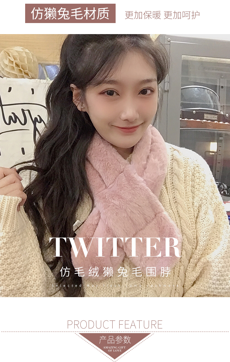 围巾女冬季,毛绒保暖加厚,韩版百搭围脖,仿獭兔毛学生少女,小清新脖套,整皮仿獭兔毛,双面加厚,保暖效果好