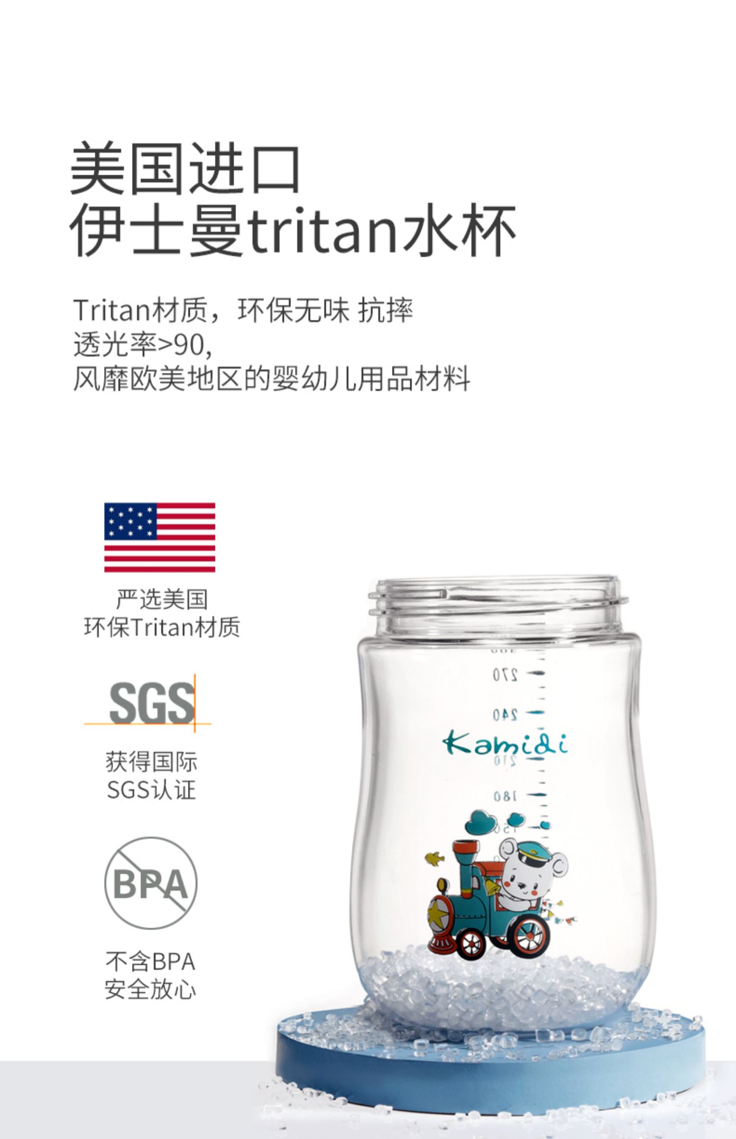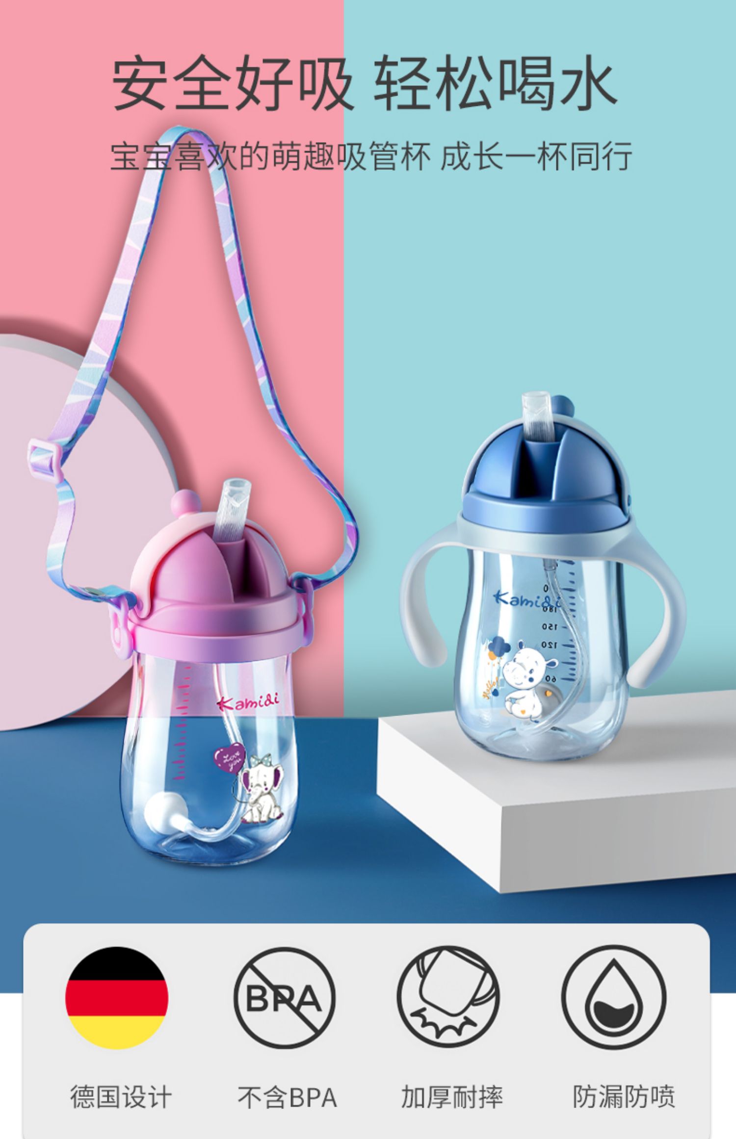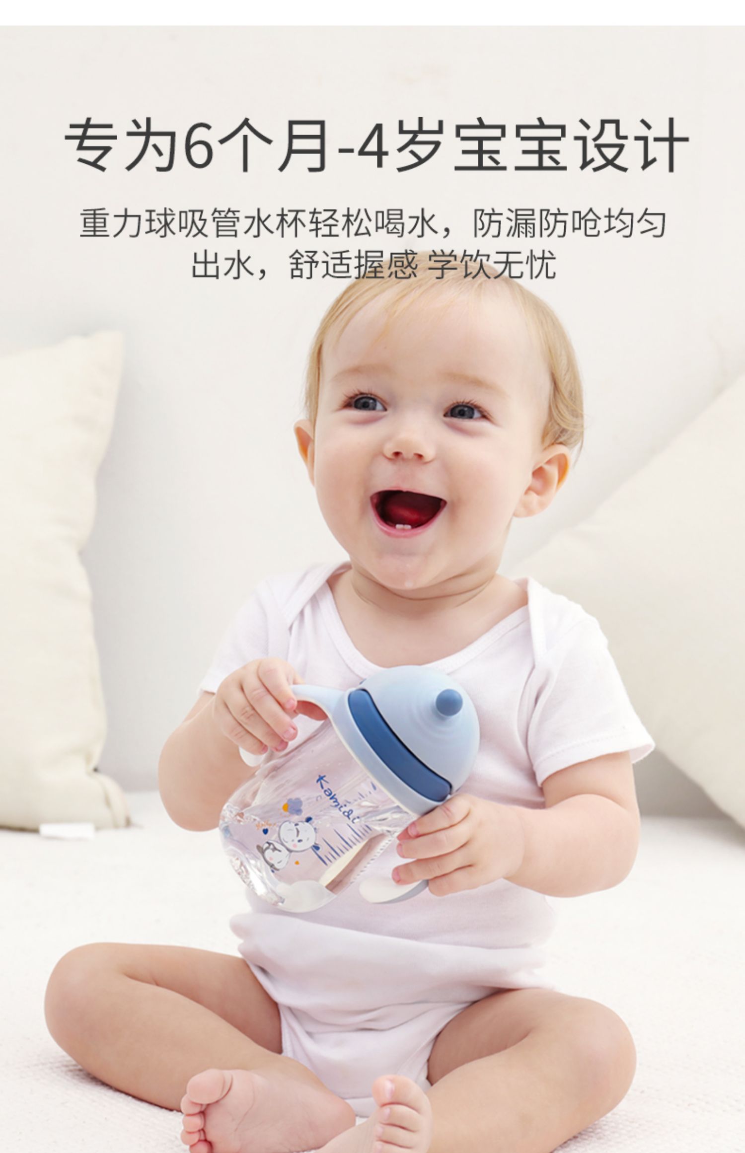 食品级tritan硅胶材质,宝宝学饮杯,防呛设计,边喝边玩宝宝更开心,不漏水,无异味,不含有害物质,趁活动速抢~