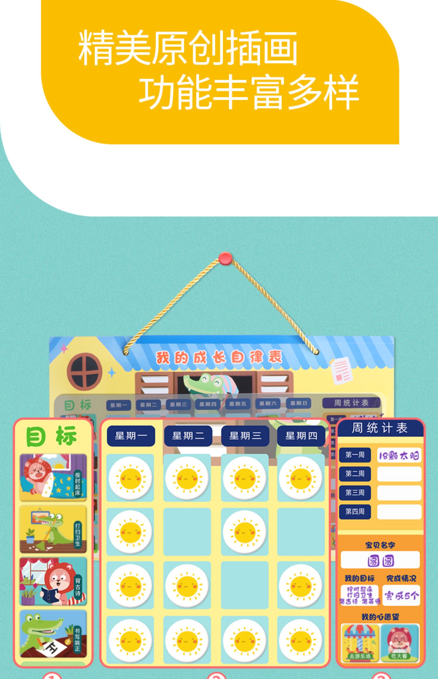 成长自律表,从小学会时间管理术,磁性卡片,可重复使用,PET白板膜可反复书写,可折叠背板,收纳不占空间,正反两面,一表两用