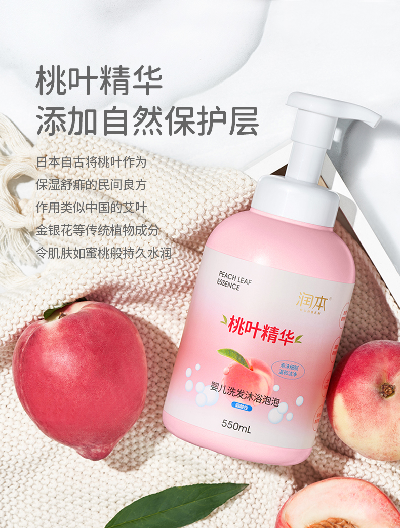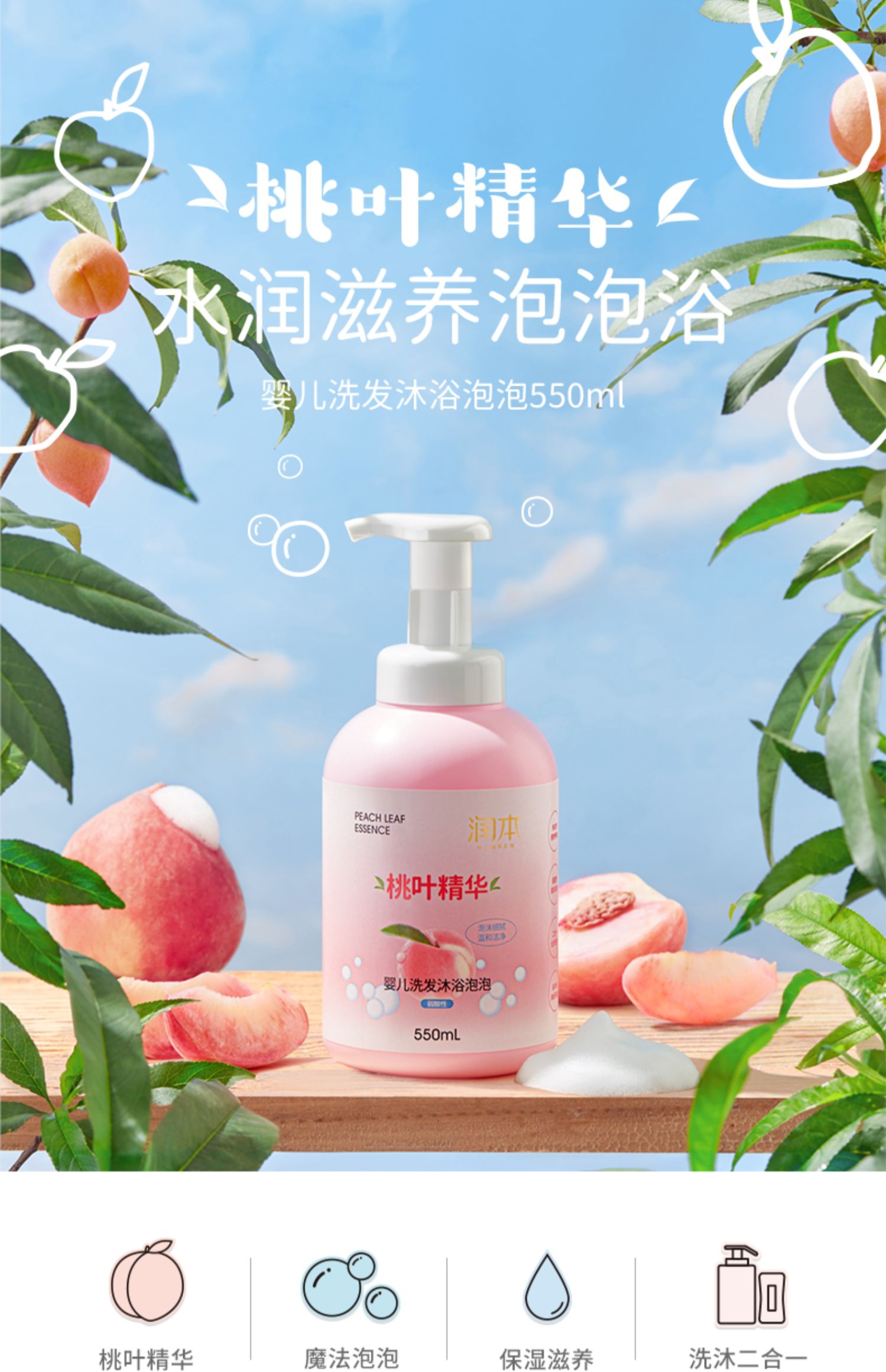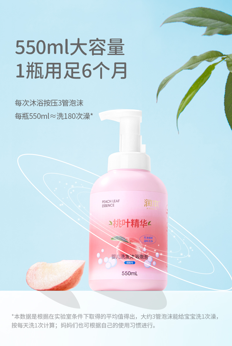 【润本旗舰店】宝宝用,大牌更放心!大容量550ml!一瓶顶2瓶用!添加桃叶精华,宝宝肌肤越洗越水润!保湿霜都不用!洗发沐浴一瓶搞定!更方便!宝妈抓紧抢啦!第2件半价,拍2再送3包湿巾。