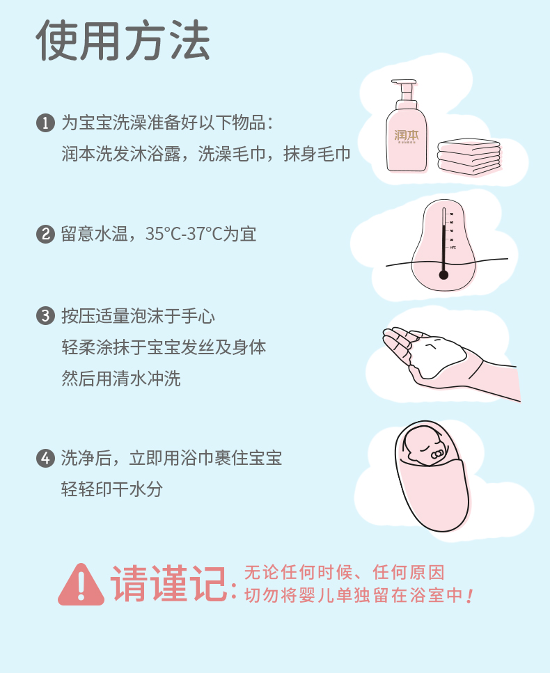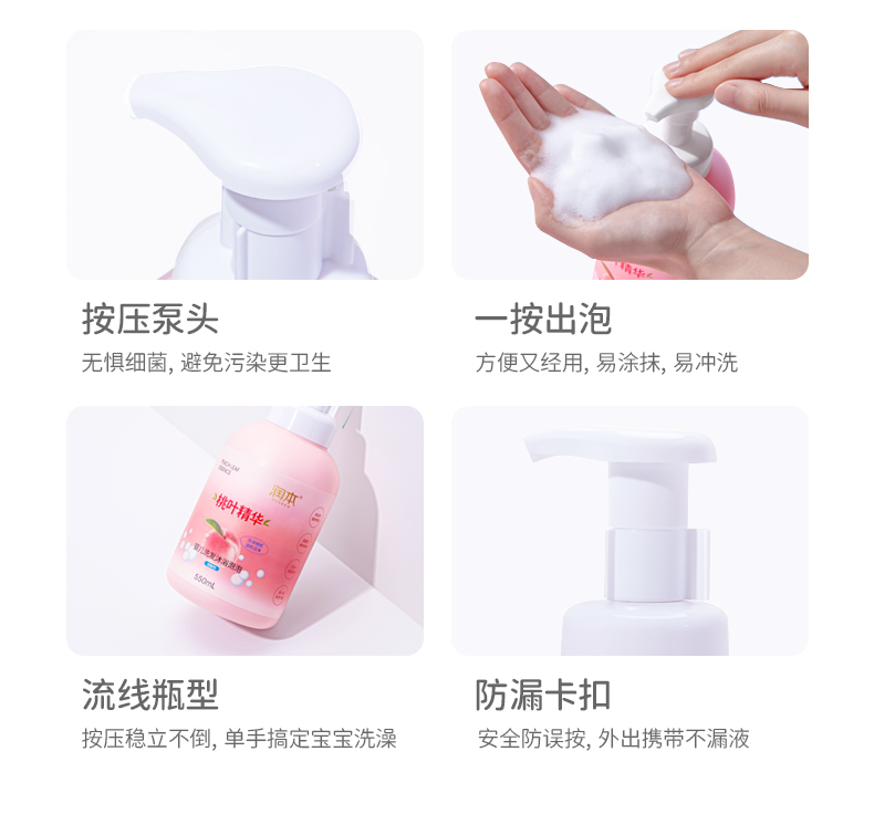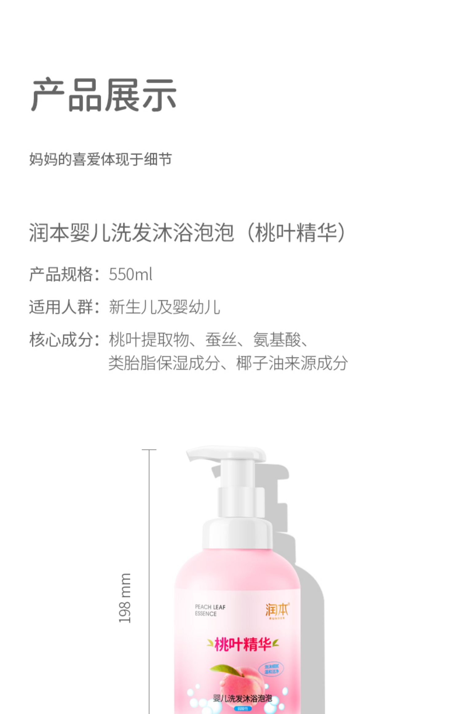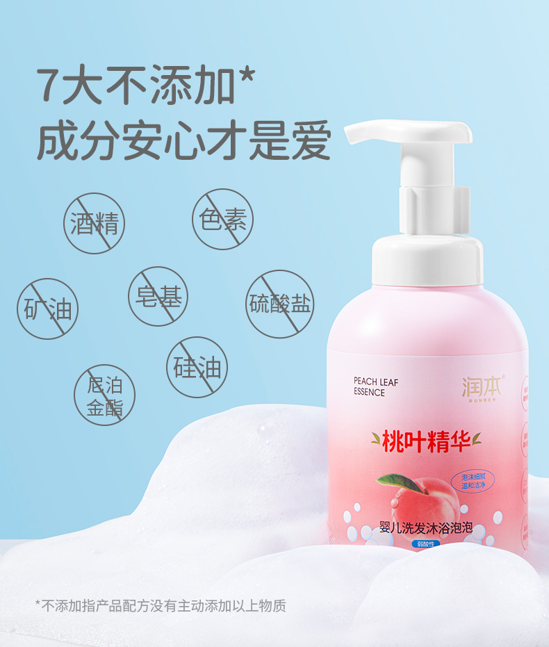 【润本旗舰店】宝宝用,大牌更放心!大容量550ml!一瓶顶2瓶用!添加桃叶精华,宝宝肌肤越洗越水润!保湿霜都不用!洗发沐浴一瓶搞定!更方便!宝妈抓紧抢啦!第2件半价,拍2再送3包湿巾。
