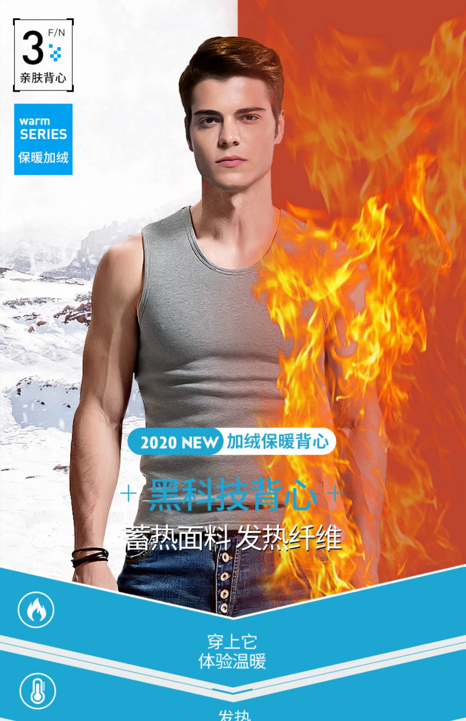 【大牌雅鹿】冬季男士加厚加绒打底背心,贴身亲肤,发热黑科技,发热软绒,快速升温,高弹轻盈随体,隐形修身显身材,有温度的冬天想要的就这么简单!不脱毛、不起球、不变形