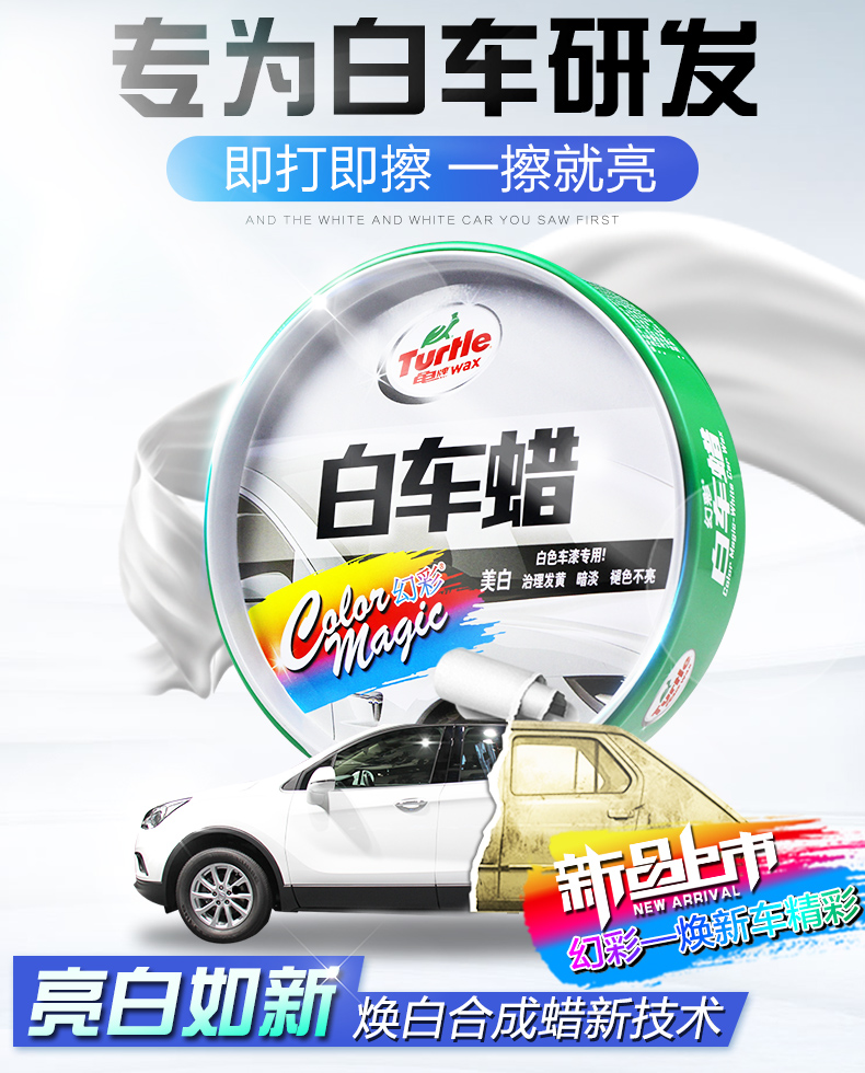 【送打蜡神器、擦巾】美国龟牌,匠心75年,白车专用,纳米分子结构,漆面保护,强效驱水,易打易擦,抗污防老化,光泽闪亮,爱车焕然一新