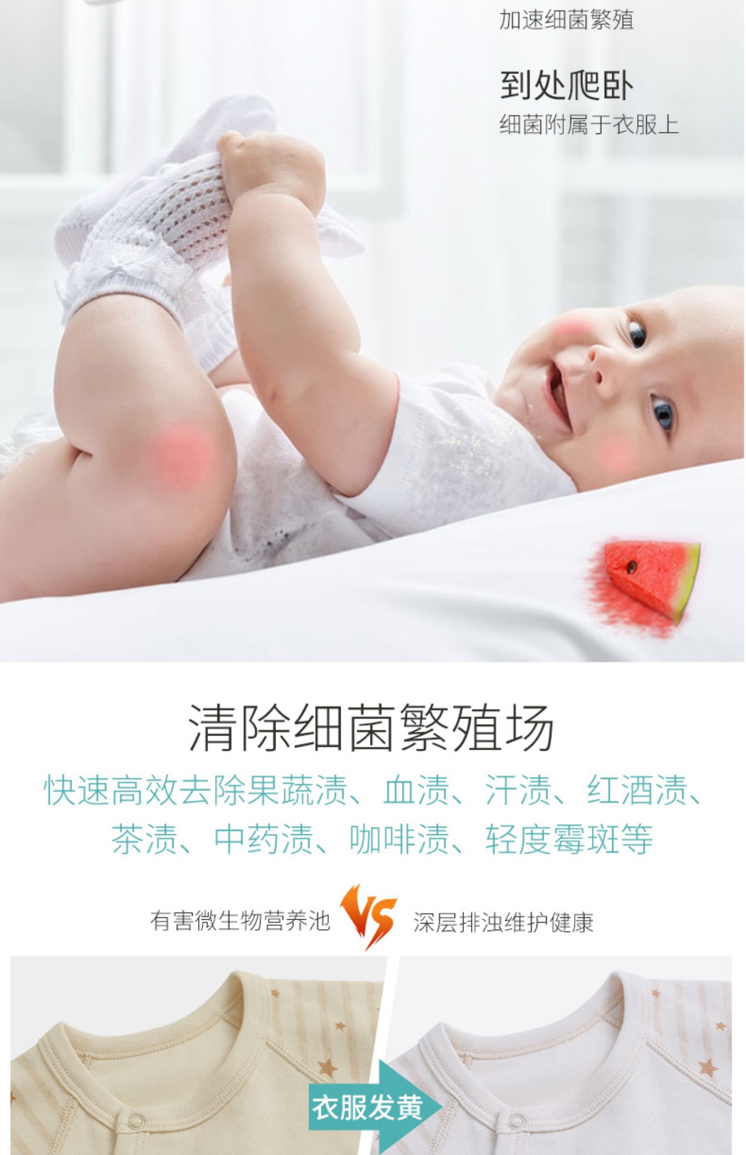 好口碑家庭精选!不伤衣物不伤手,不含荧光剂,高效去污去黄,增白护色,根本不怕衣服发黄问题!轻松解决各种污渍问题!宝宝用着舒适,妈妈买着放心!