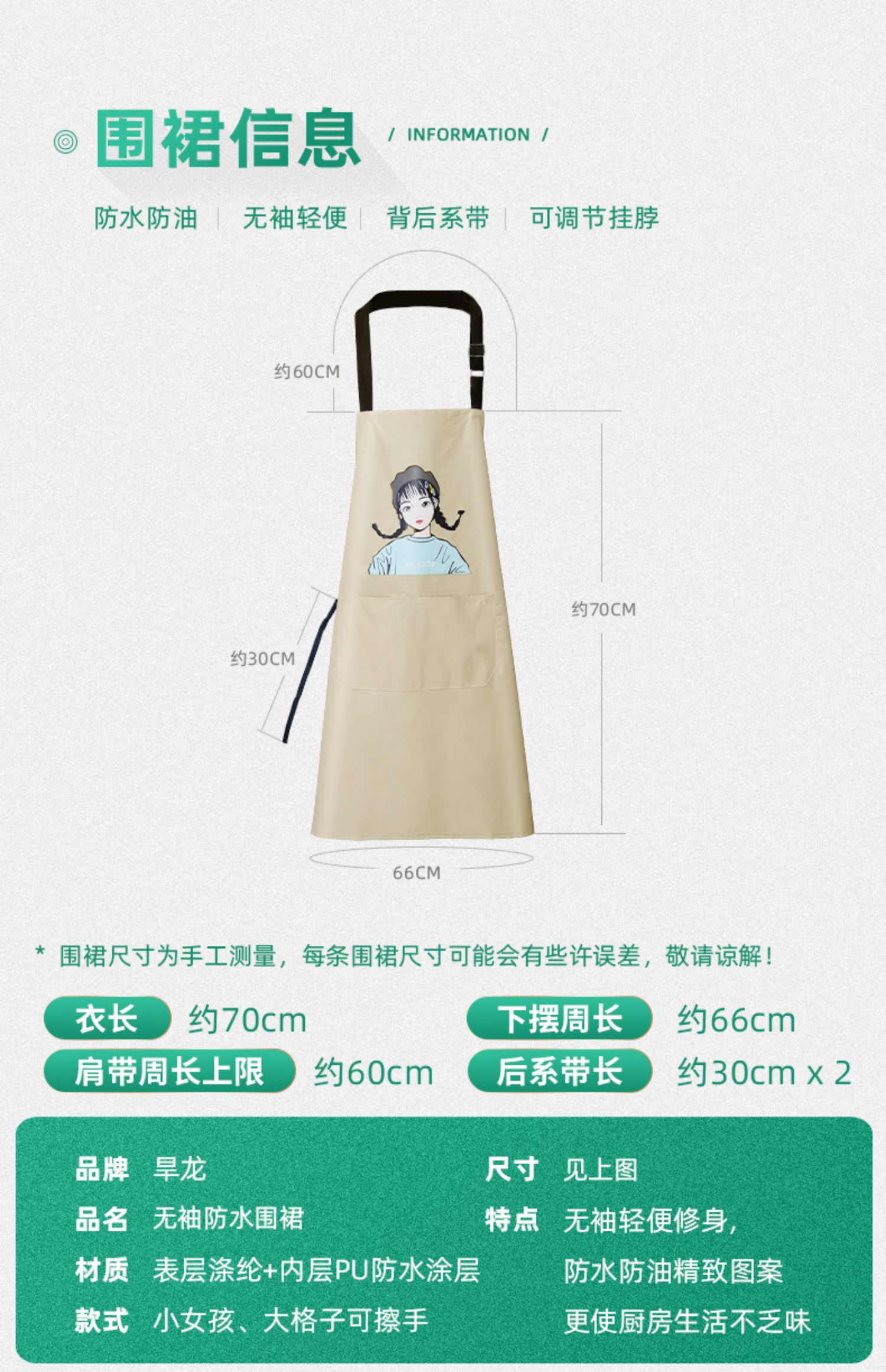 【旱龙天猫4年老店】家用防水、防油围裙,多款可选,无袖轻便,背后系带,可调节挂脖,可擦手,防水防污,更耐用!【赠运费险】