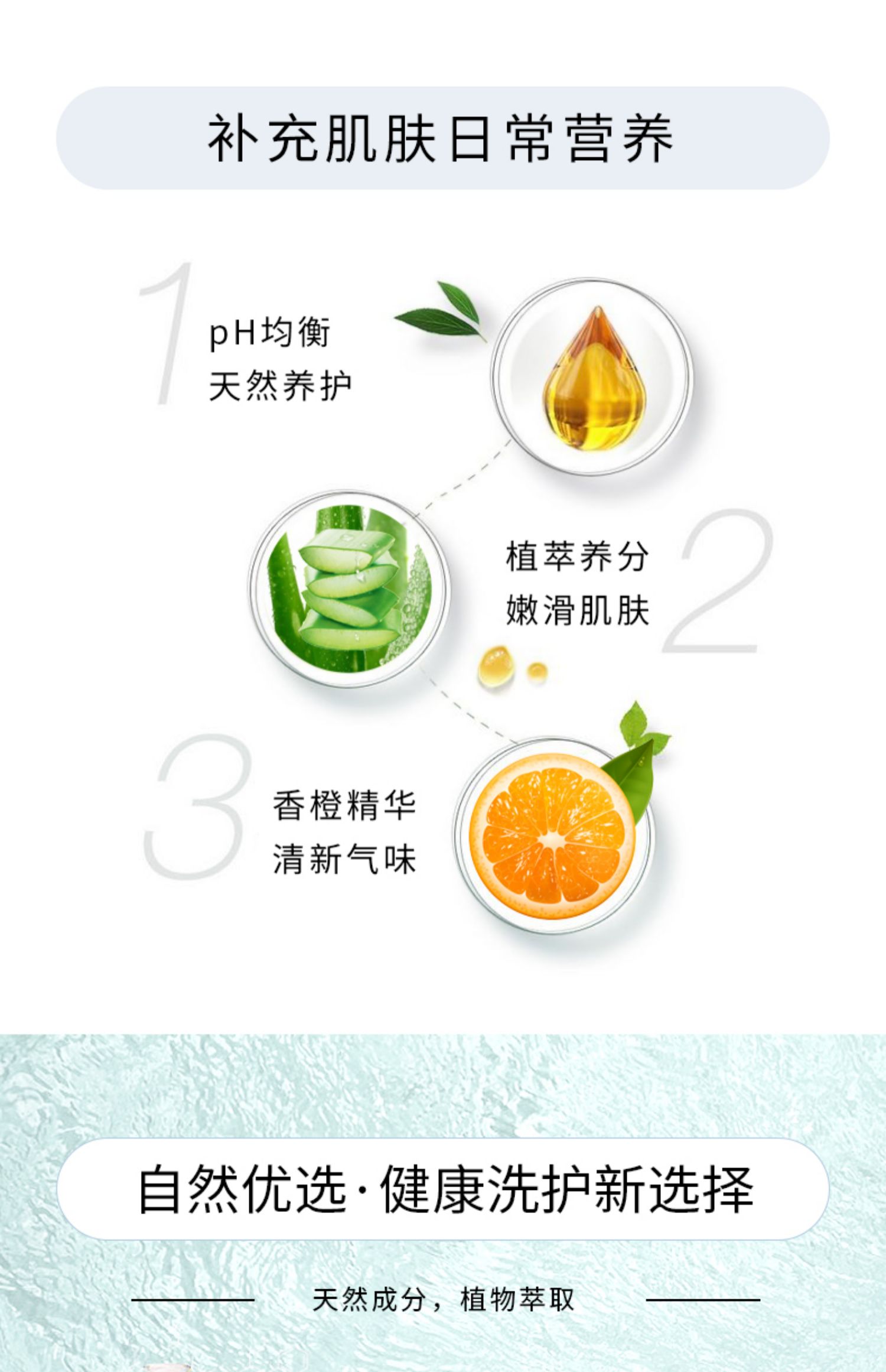 植萃养分,嫩滑肌肤,香橙精华,清新气味,日常平衡滋养,洗护沐浴二合一。补充肌肤日常营养,温和无泪配方,一次舒适的沐浴,能让宝宝心情愉悦,也能让妈妈享受幸福时光!