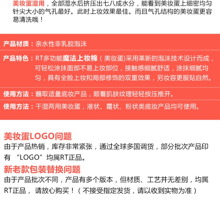 Q弹美妆蛋,干湿两用,上妆均匀,妆效出众!!多切面设计,亲水性非乳胶。