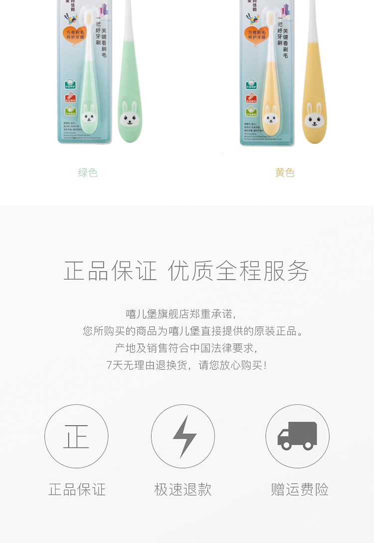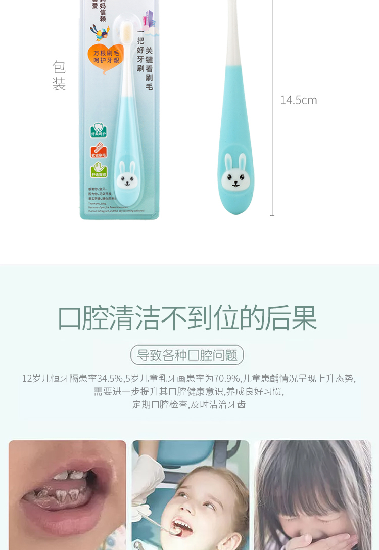喜欢的宝妈抓紧时间抢购啦!!!宝宝洁齿护齿牙刷,呵护口腔,防滑手柄。卡通兔子造型,安心材质,万根刷毛,让宝宝从小爱上刷牙。