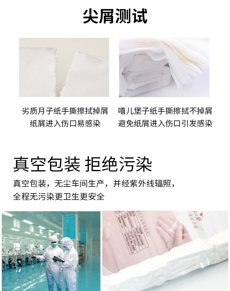 下单口水巾,真空包装,遇水不易破,不含荧光剂,不掉屑,无添加无尘屑,避免伤口感染,可以给宝宝当隔尿垫用,月子恶露专用纸巾!