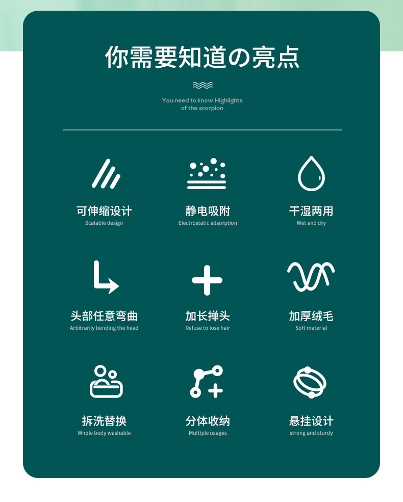 【可自由伸缩至2.8米】【360°旋转弯曲】家庭清洁必备神器,纤维静电吸附,细缝边角也可轻松打理。可水洗,除尘不掉毛。高处/缝隙/角落,适用多种场景,扫灰不扬尘!爱车也能用哦~【赠运费险】