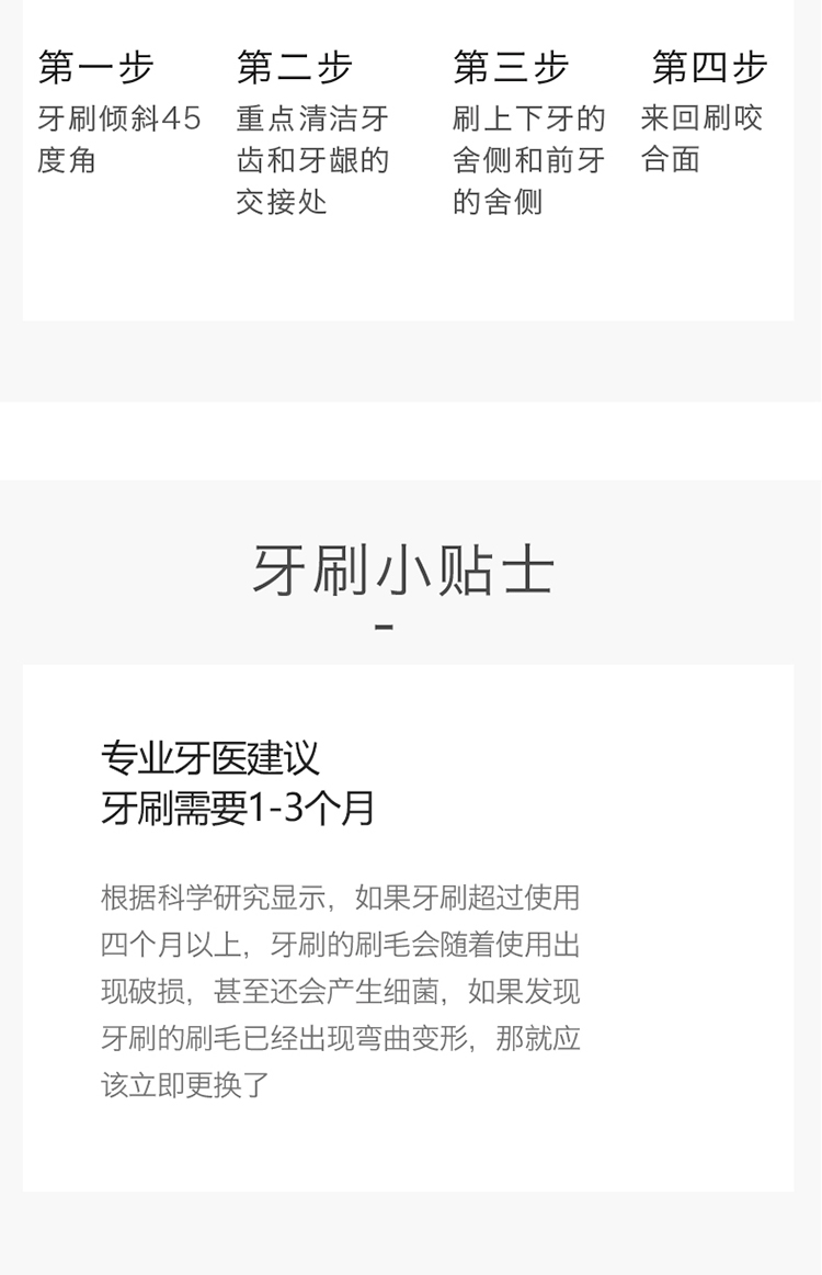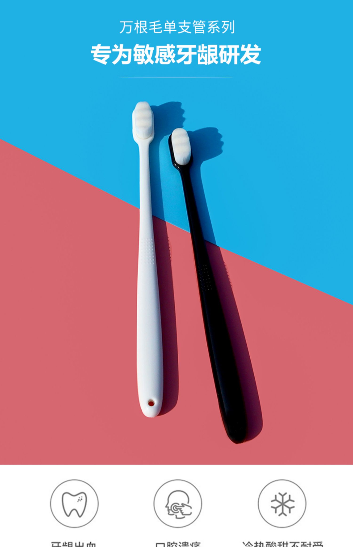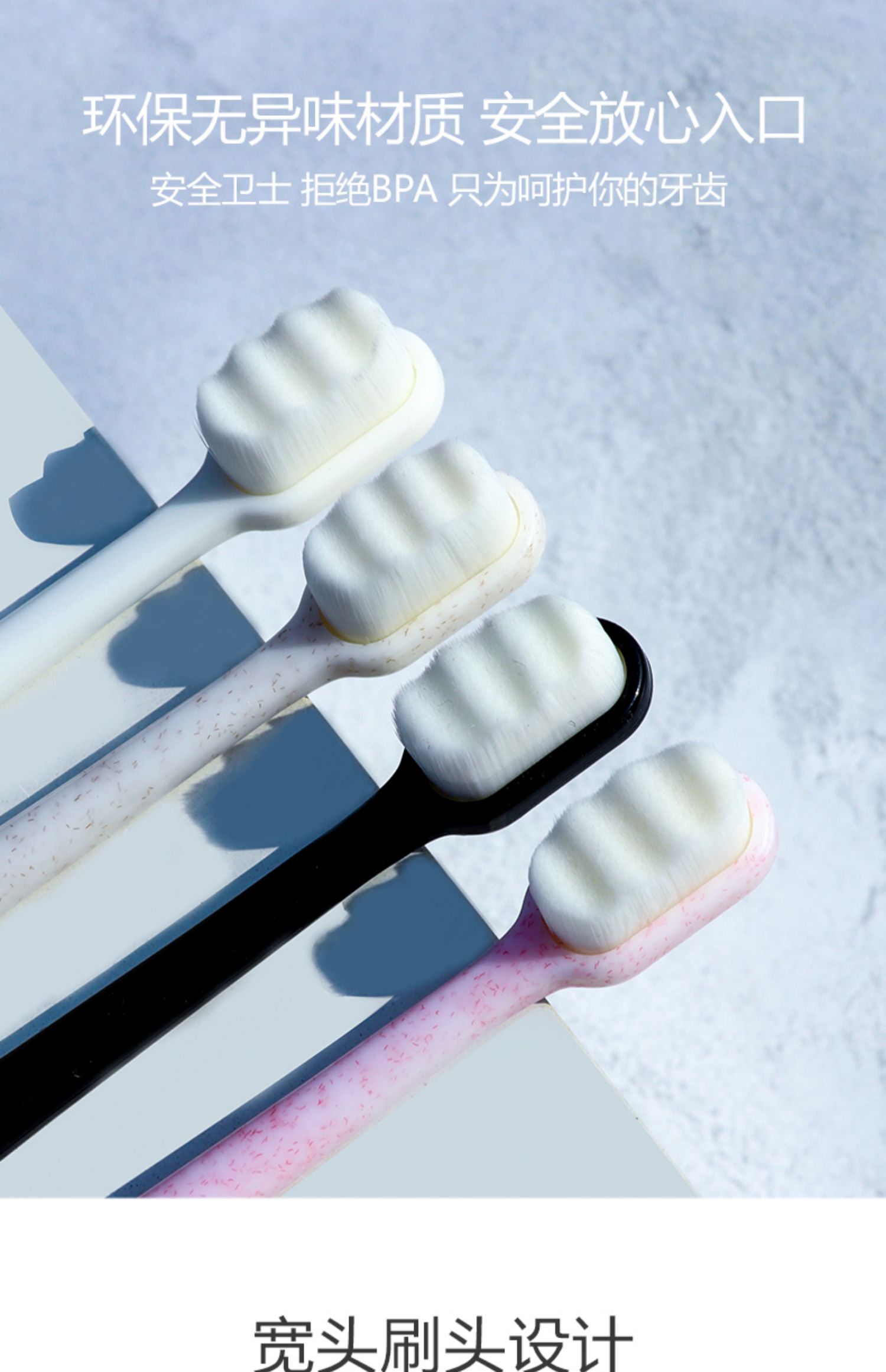 一体式植毛工艺,环保安全无异味,绒感微米刷丝,温柔对待每颗牙齿,圆弧刷头,修长刷身握感舒适,便携独立包装,巧妙刷头设计,360°清洁你的口腔,出差旅行都可以带~