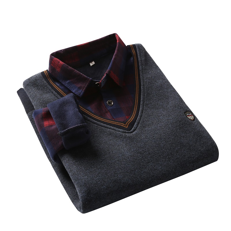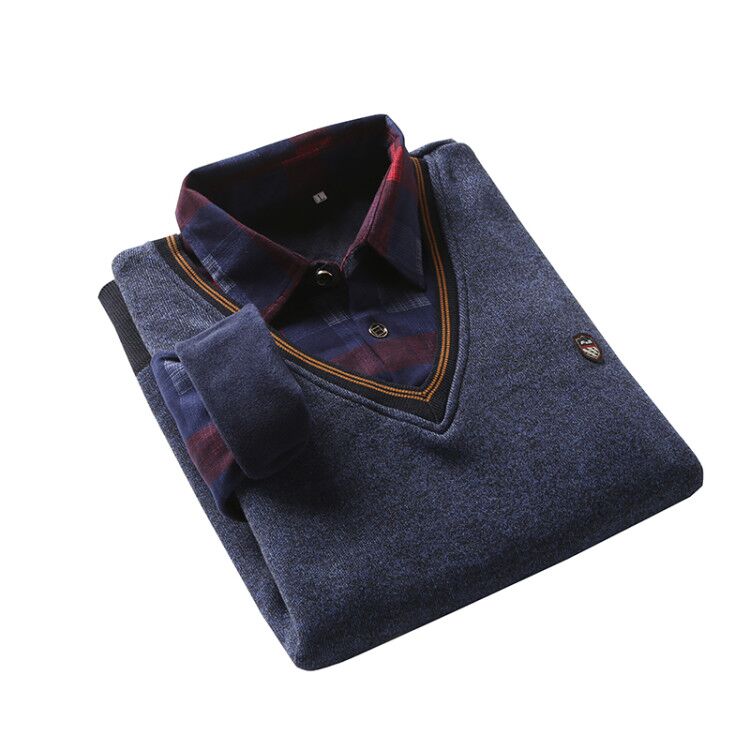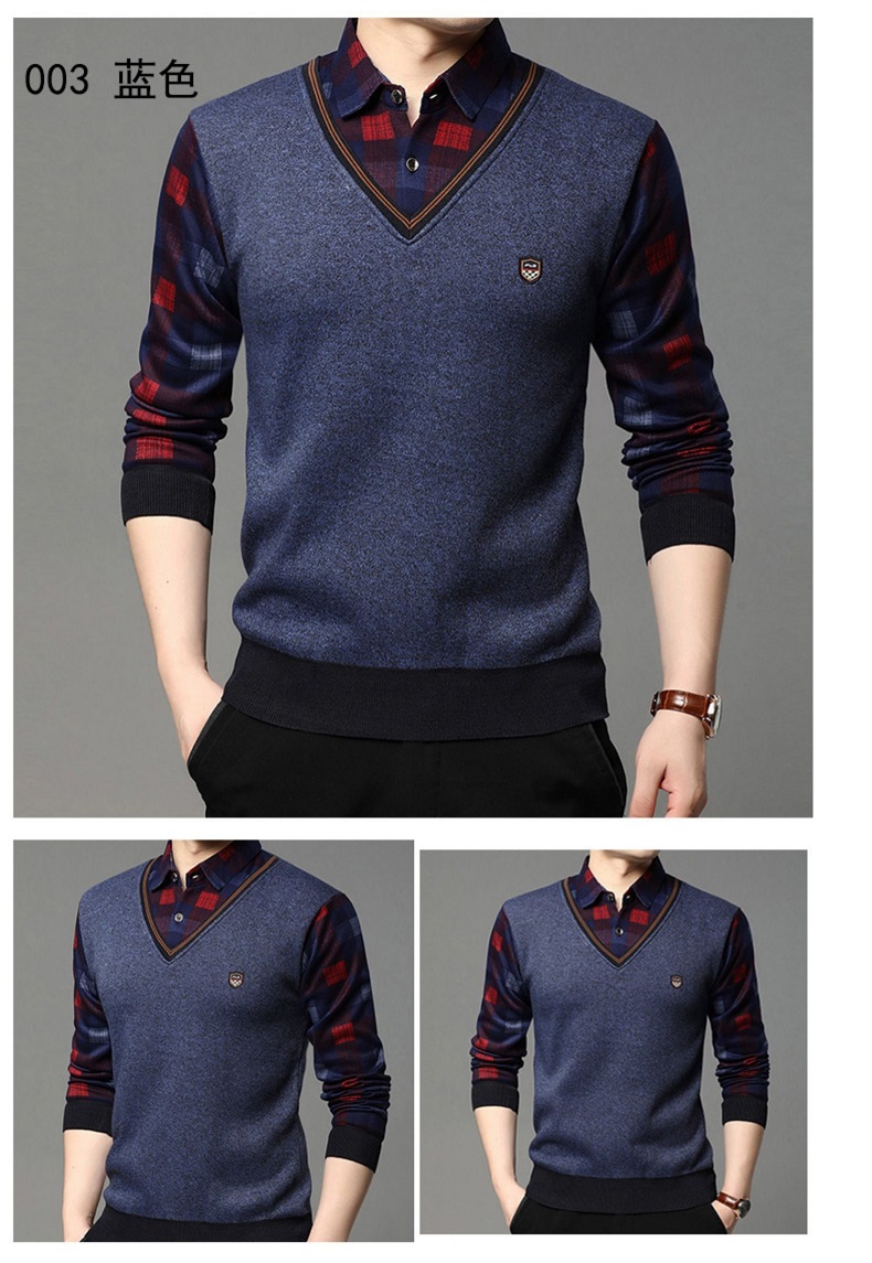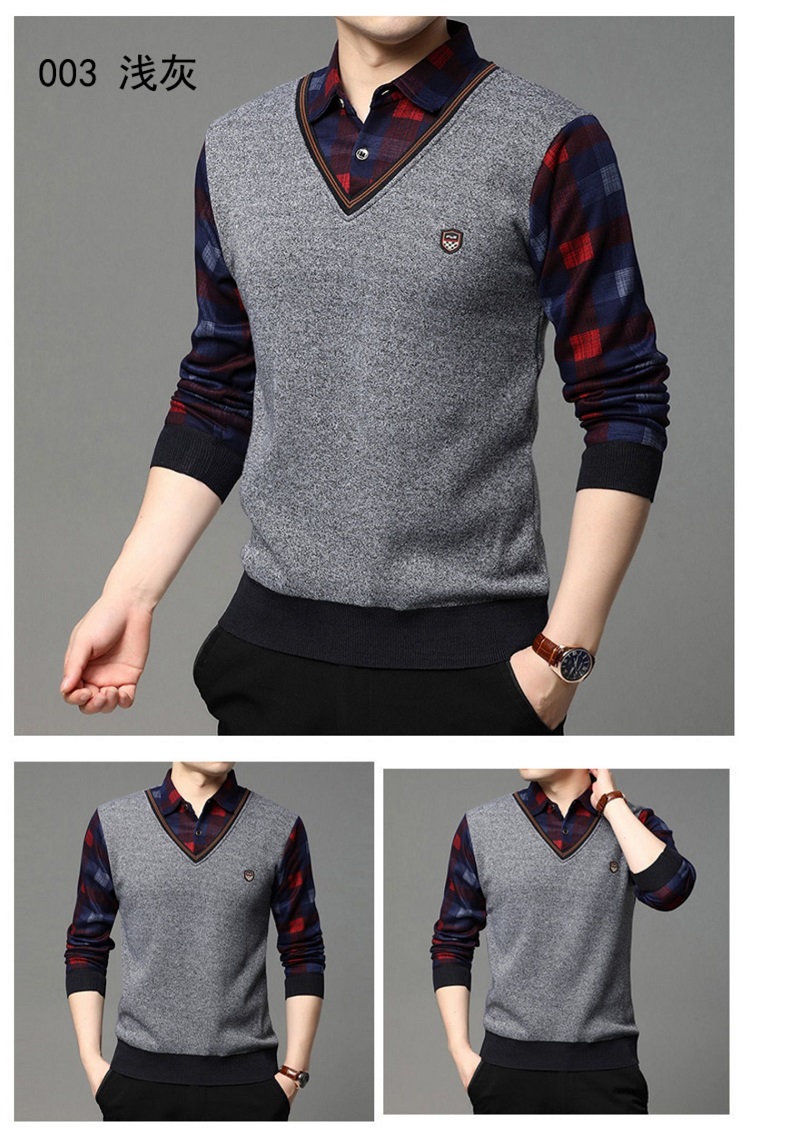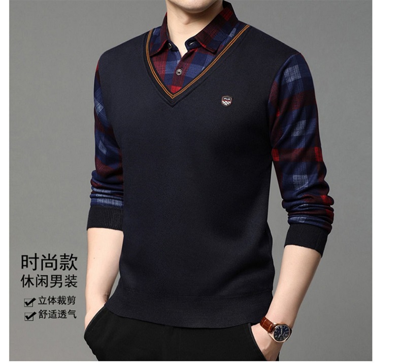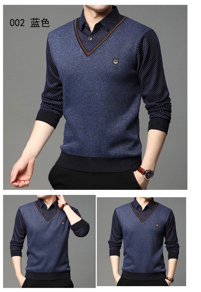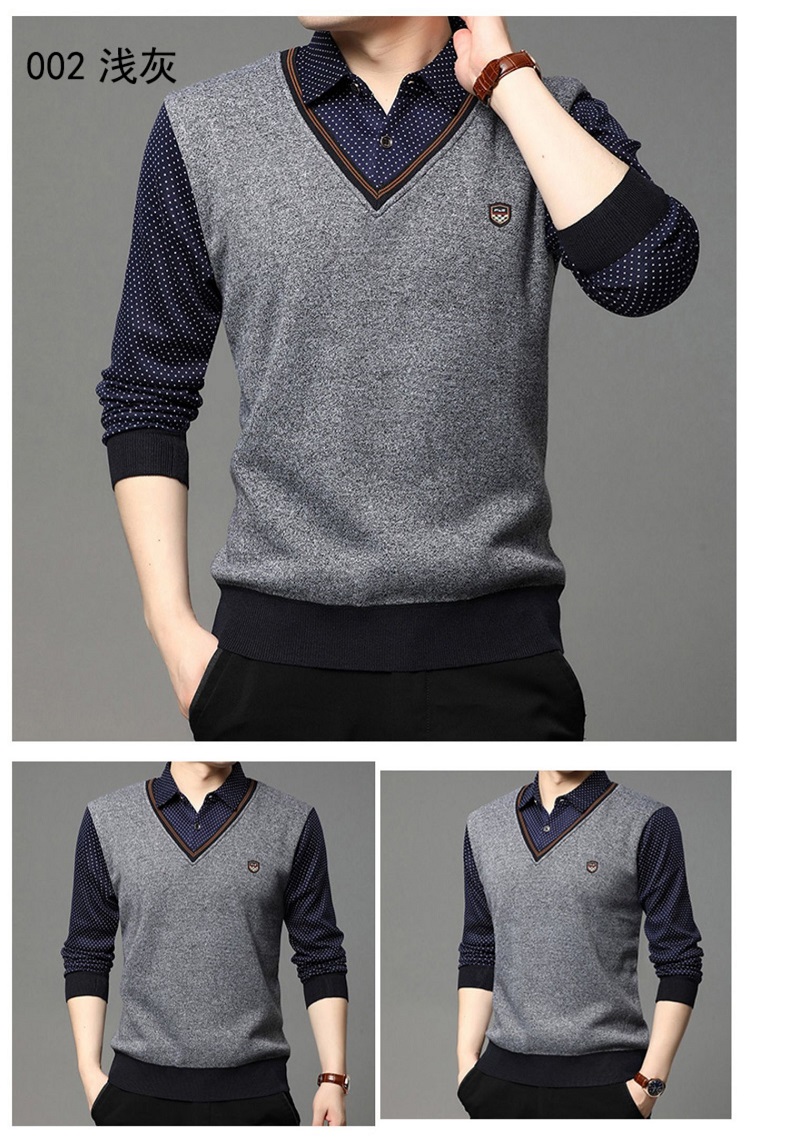 【卉祥】秋冬季假两件毛衣衬衫男款,面料柔软舒适,不变形,弹力修身版型,休闲百搭,潮男必备,推荐购买!!
