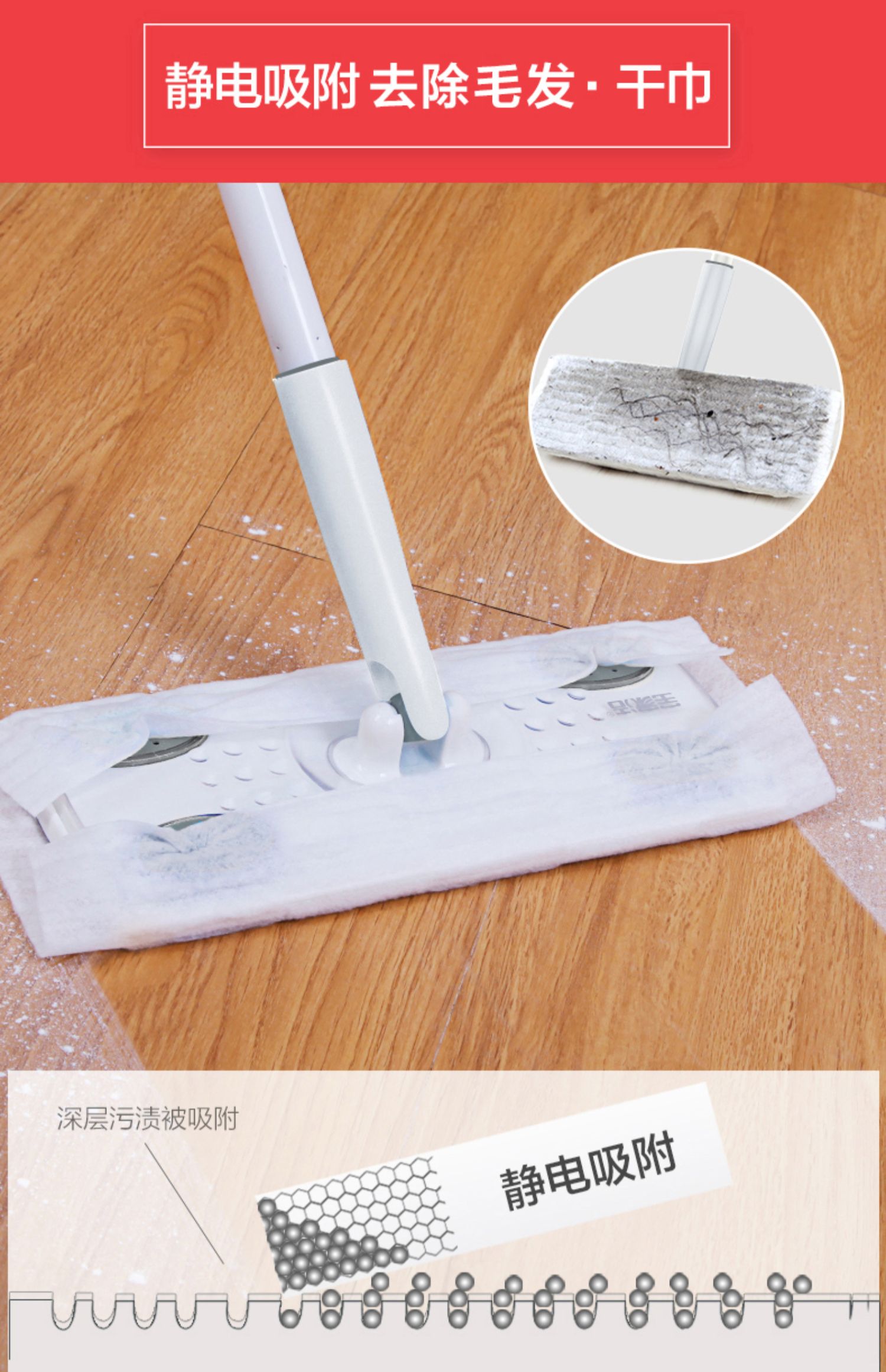 抖音同款!【宝家洁】静电拖把+免洗一次性除尘纸组合,专注家庭清洁,品质之选,深受上万家庭的喜爱!超强静电吸尘!省时省力,除菌抑螨,一次性干湿巾保护地面,单手拖地,再也不累了!
