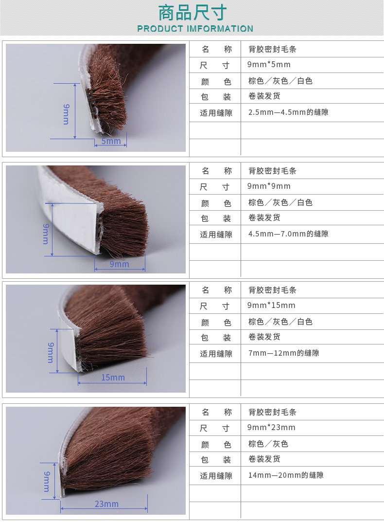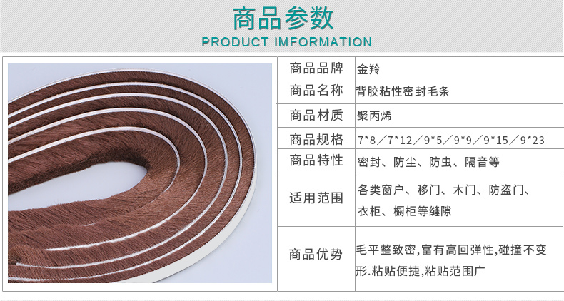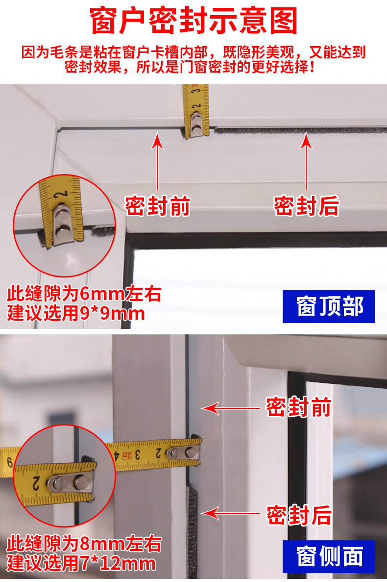 【超值5米装】多尺寸毛条可选,根据门窗缝隙大小选择对应毛条尺寸,防风防尘防噪音,再也不怕大风灰尘噪音进入了,多用途,粘性强不留痕迹,适合所有门窗密封!