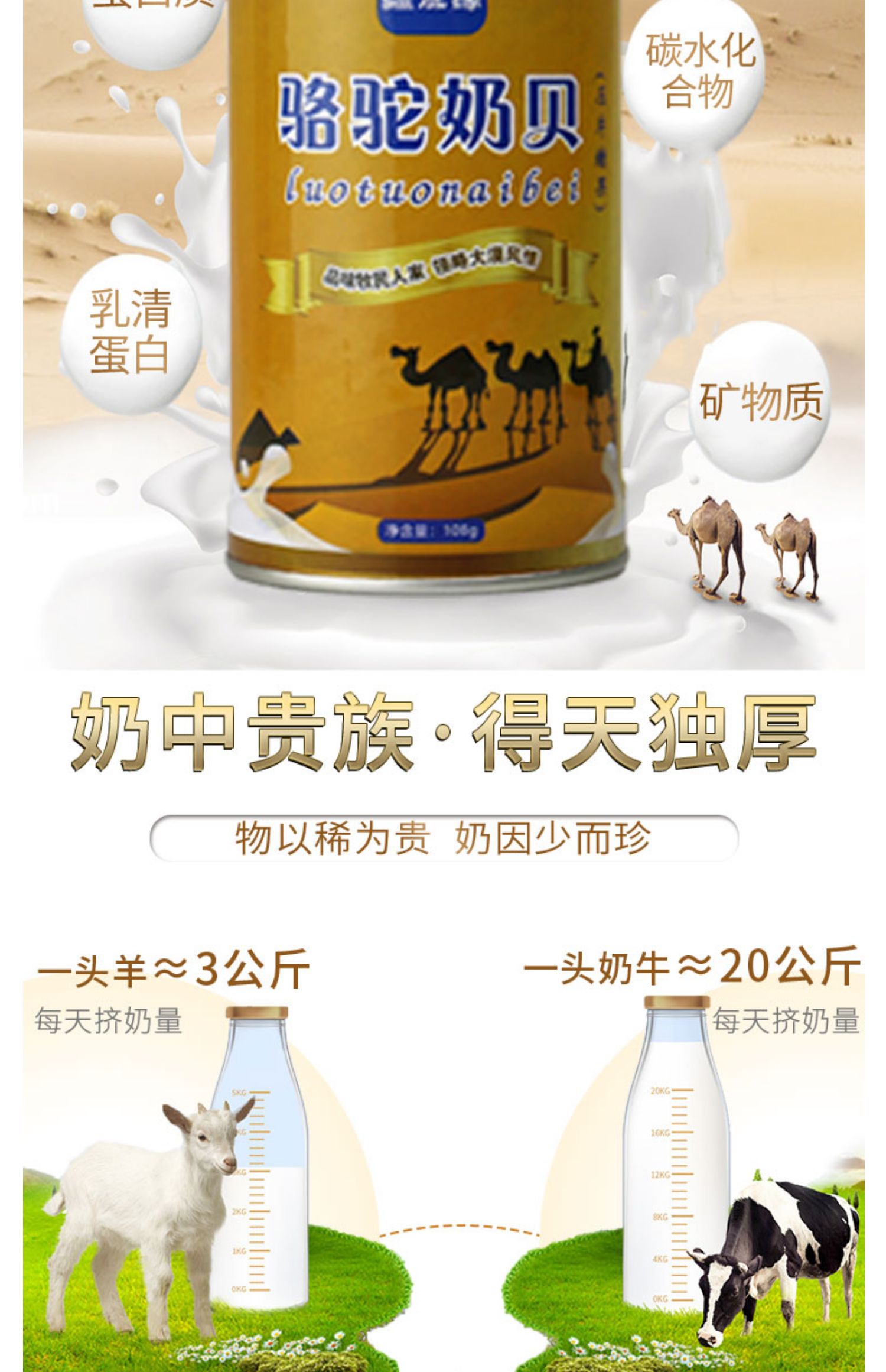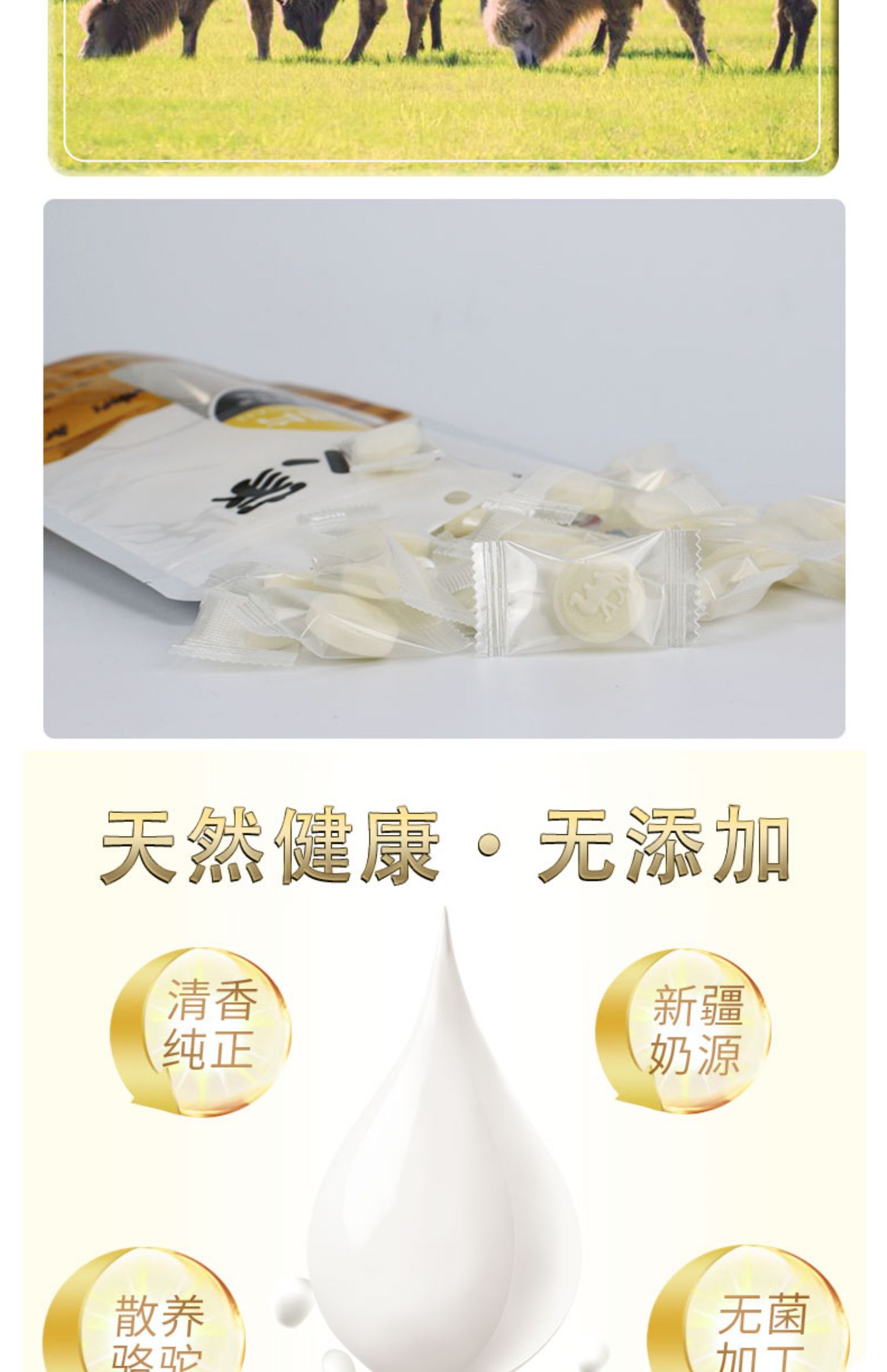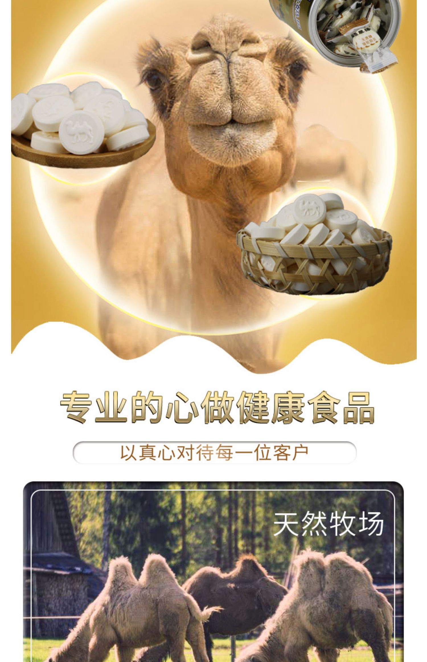 【正品保证】天然新疆奶源骆驼奶,沙漠中的白金骆驼奶,富含十多种氨基酸和维生素,安全无添加,蛋白质含量丰富,奶味浓郁纯正,营养价值高!日嚼3片,嚼出营养美味!【赠运费险】