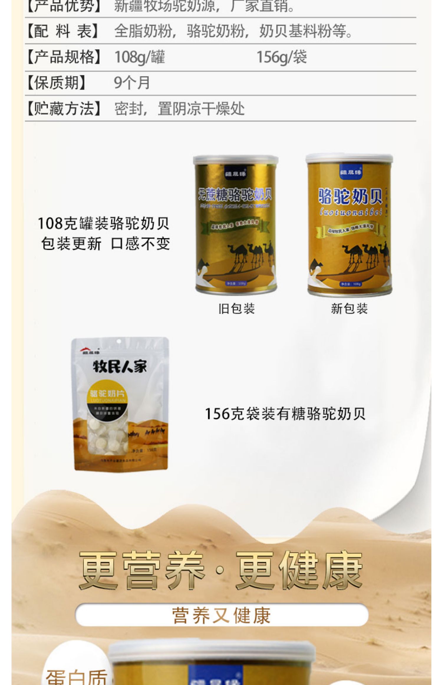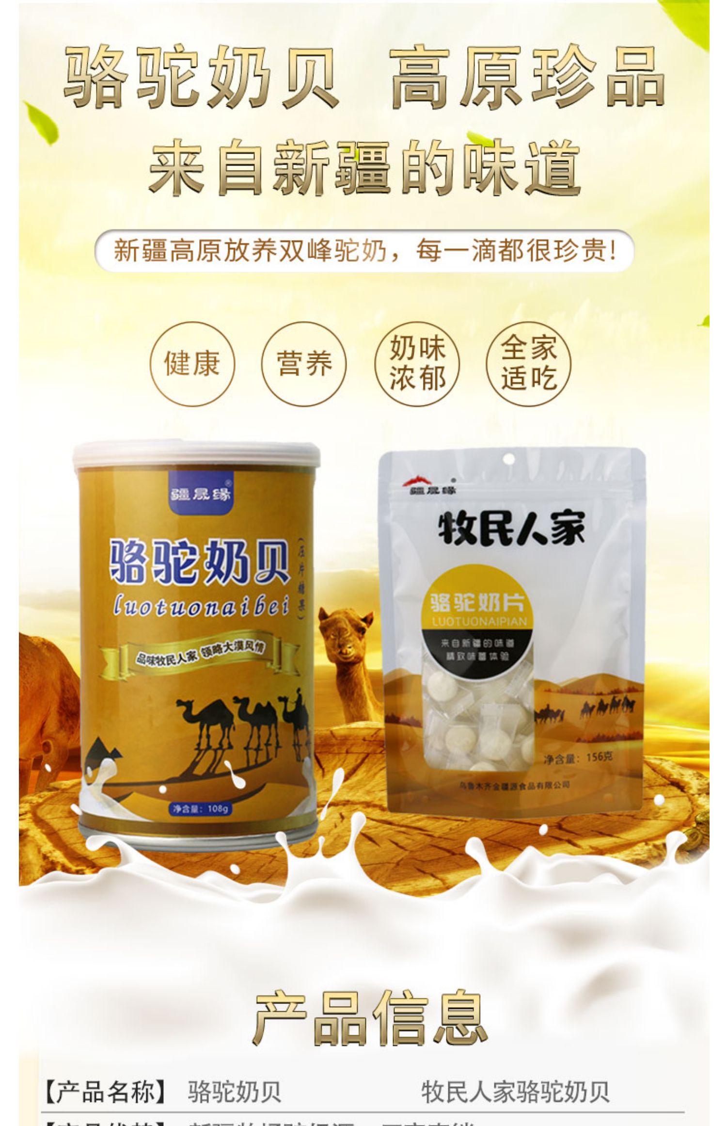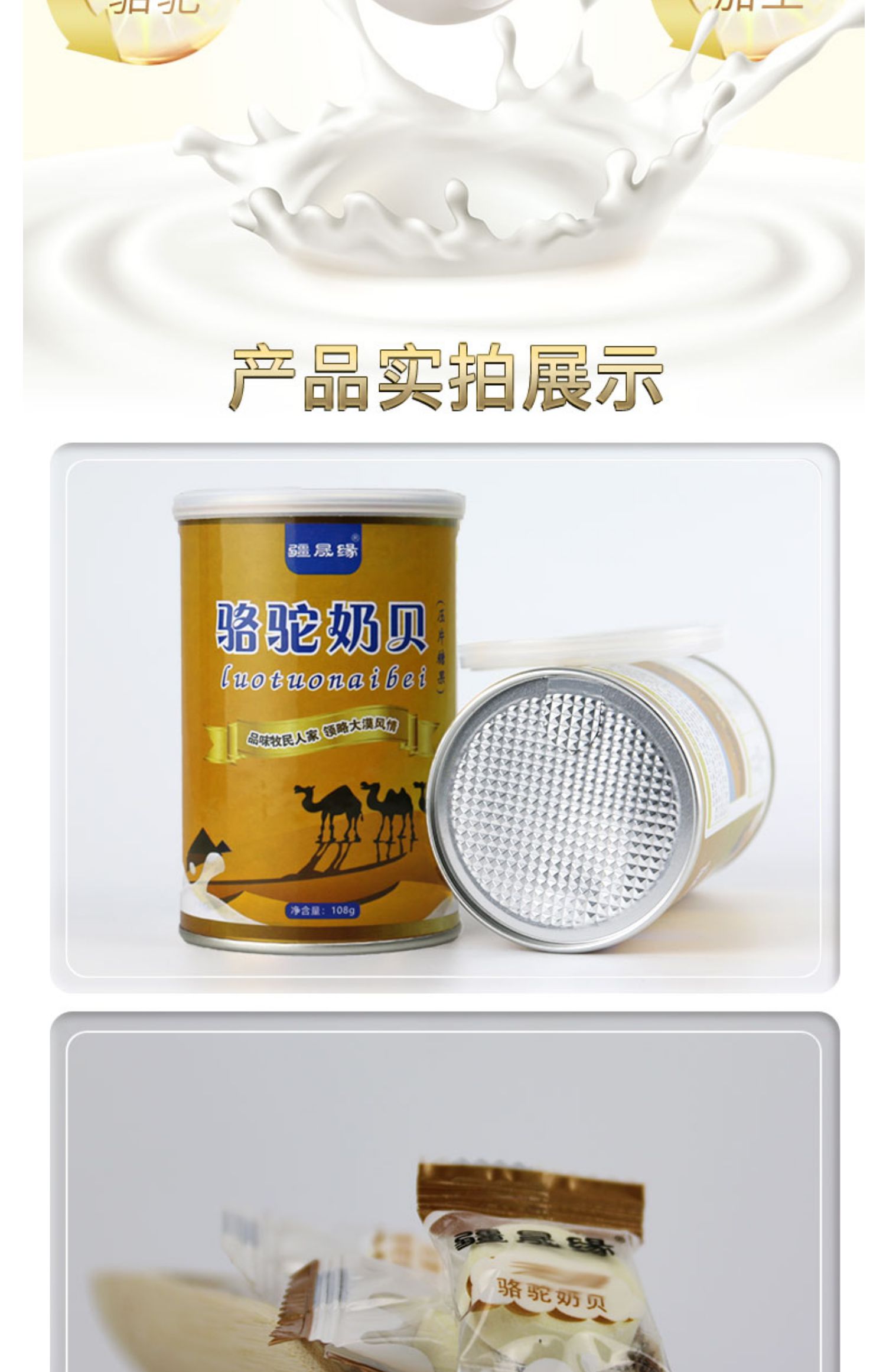 【正品保证】天然新疆奶源骆驼奶,沙漠中的白金骆驼奶,富含十多种氨基酸和维生素,安全无添加,蛋白质含量丰富,奶味浓郁纯正,营养价值高!日嚼3片,嚼出营养美味!【赠运费险】