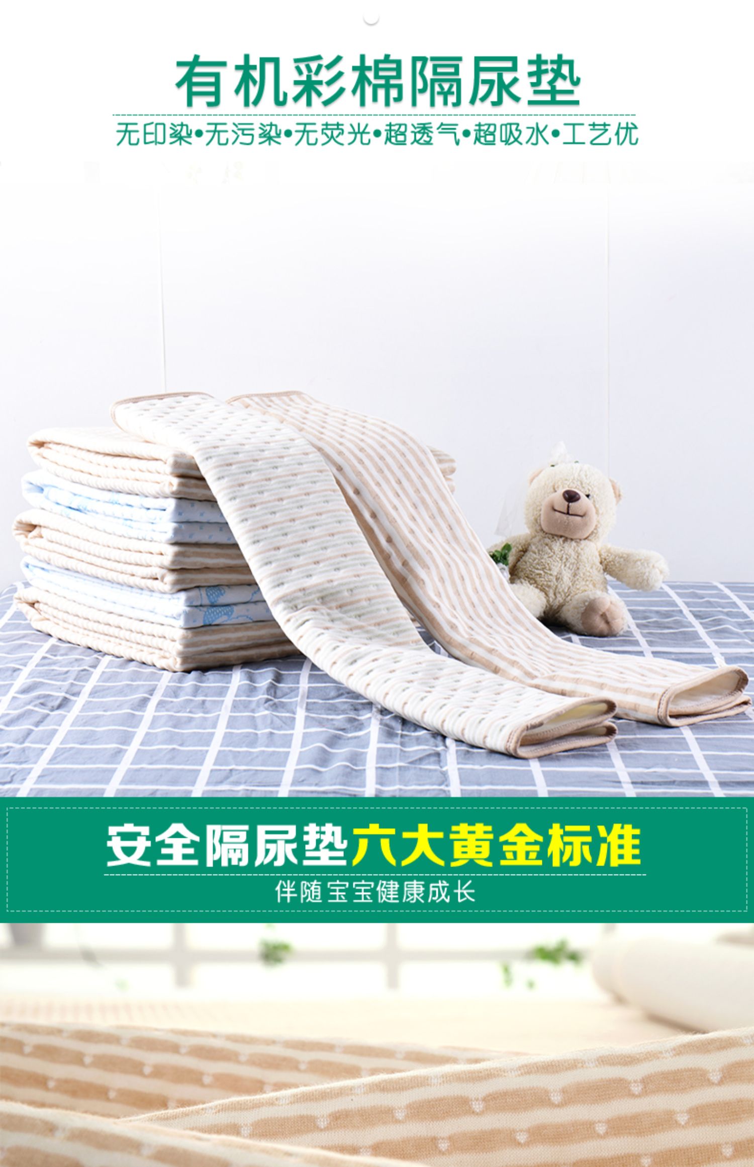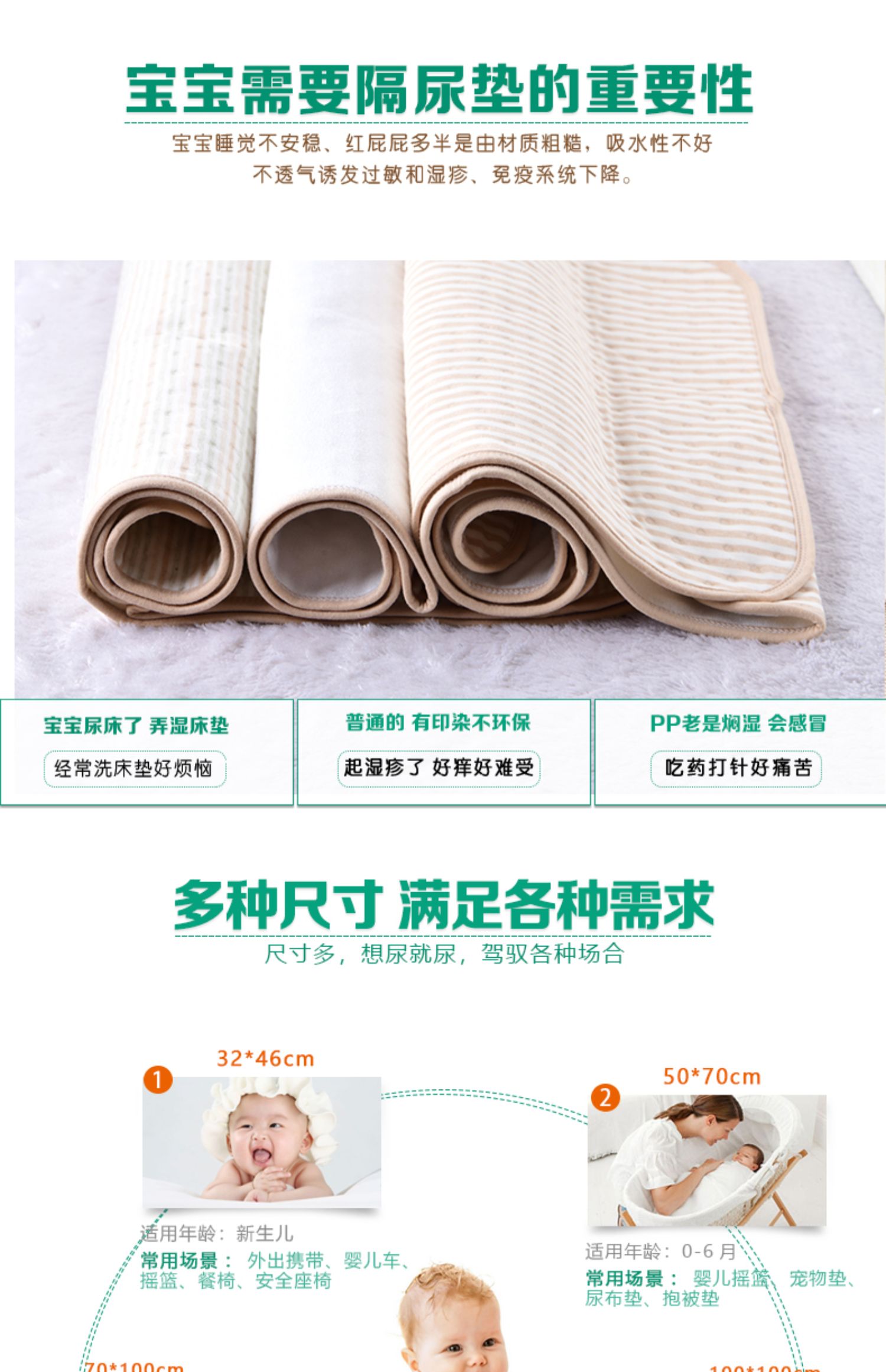 来自宝妈们的分享,婴儿可水洗纯棉隔尿垫,安全放心,六大黄金标准,多重尺寸满足各种需求,不止宝宝能用哦,有了它再也不用担心宝宝尿床啦~~!