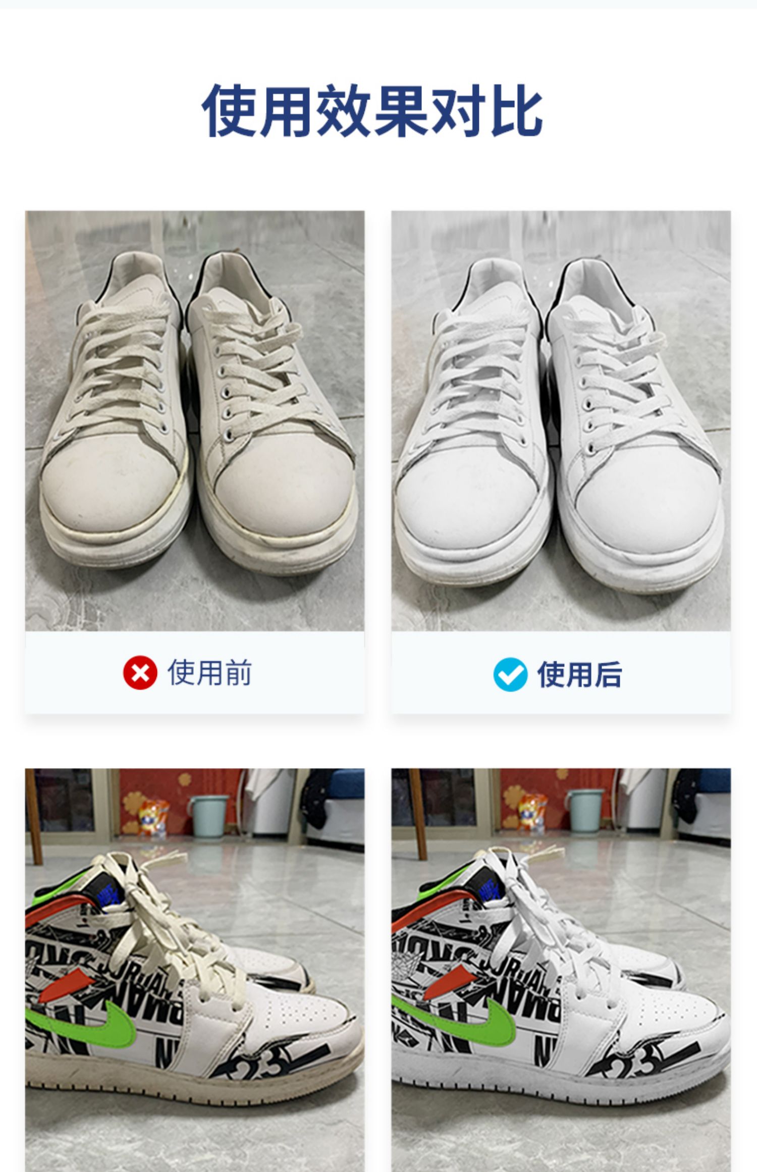 买2发3同款!送清洁工具,温和不伤鞋,即擦即干!活性环保配方,高效去污,增白,养护,一涂一擦,免水洗,两步搞定,想白就是这么简单!实用性超高,速抢!轻松解决污渍问题~