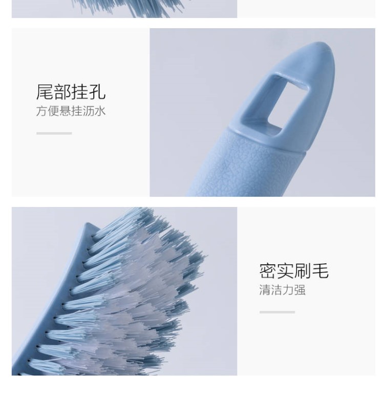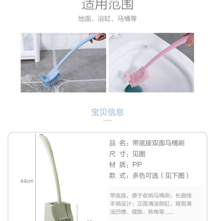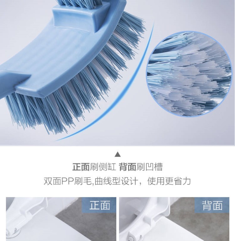 采用优质环保PP材质,弯曲手柄,两面刷,清洁凹槽,细缝,各个角落都不放过,让你的卫生间焕然一新