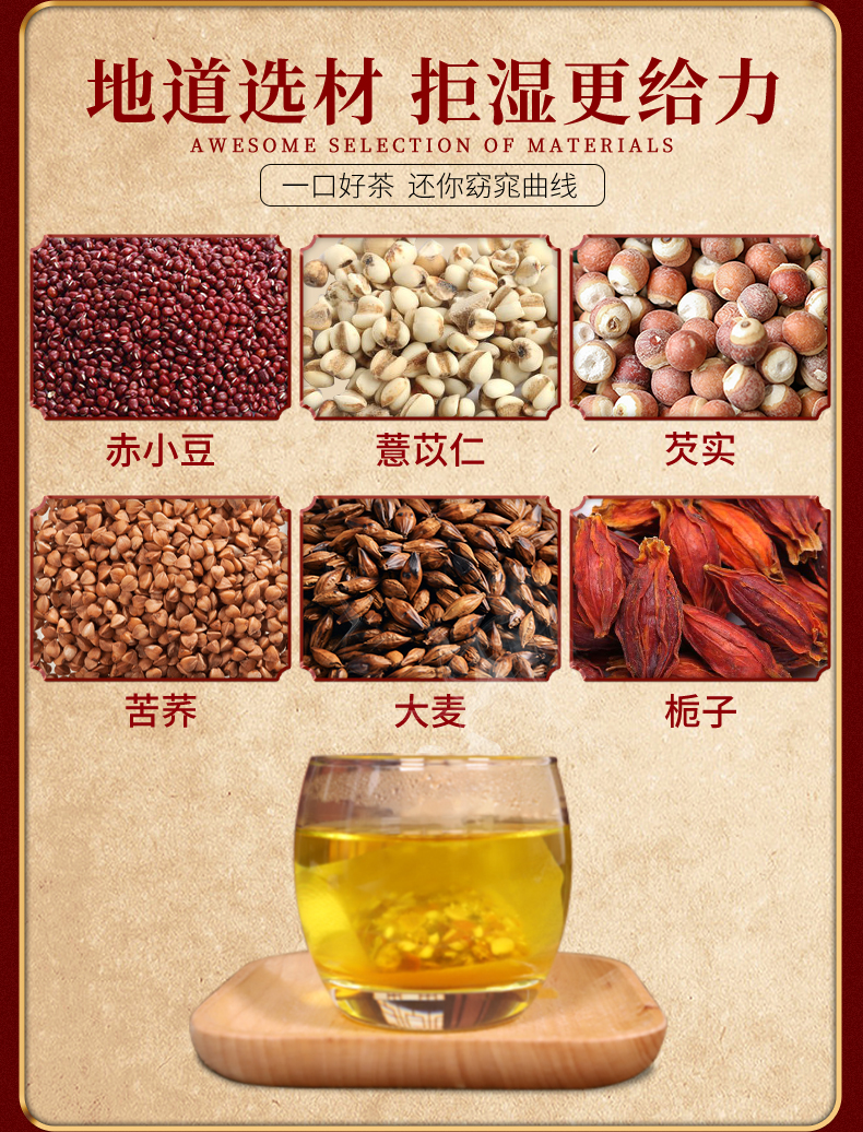【正品保证】赤小豆芡实薏米红豆祛湿茶,真材实料,医食同源,独立包装,科学配比,口感醇厚,摆脱身体湿气、美丽不臃肿,无湿一身轻,轻松瘦身,让你每日神清气爽!