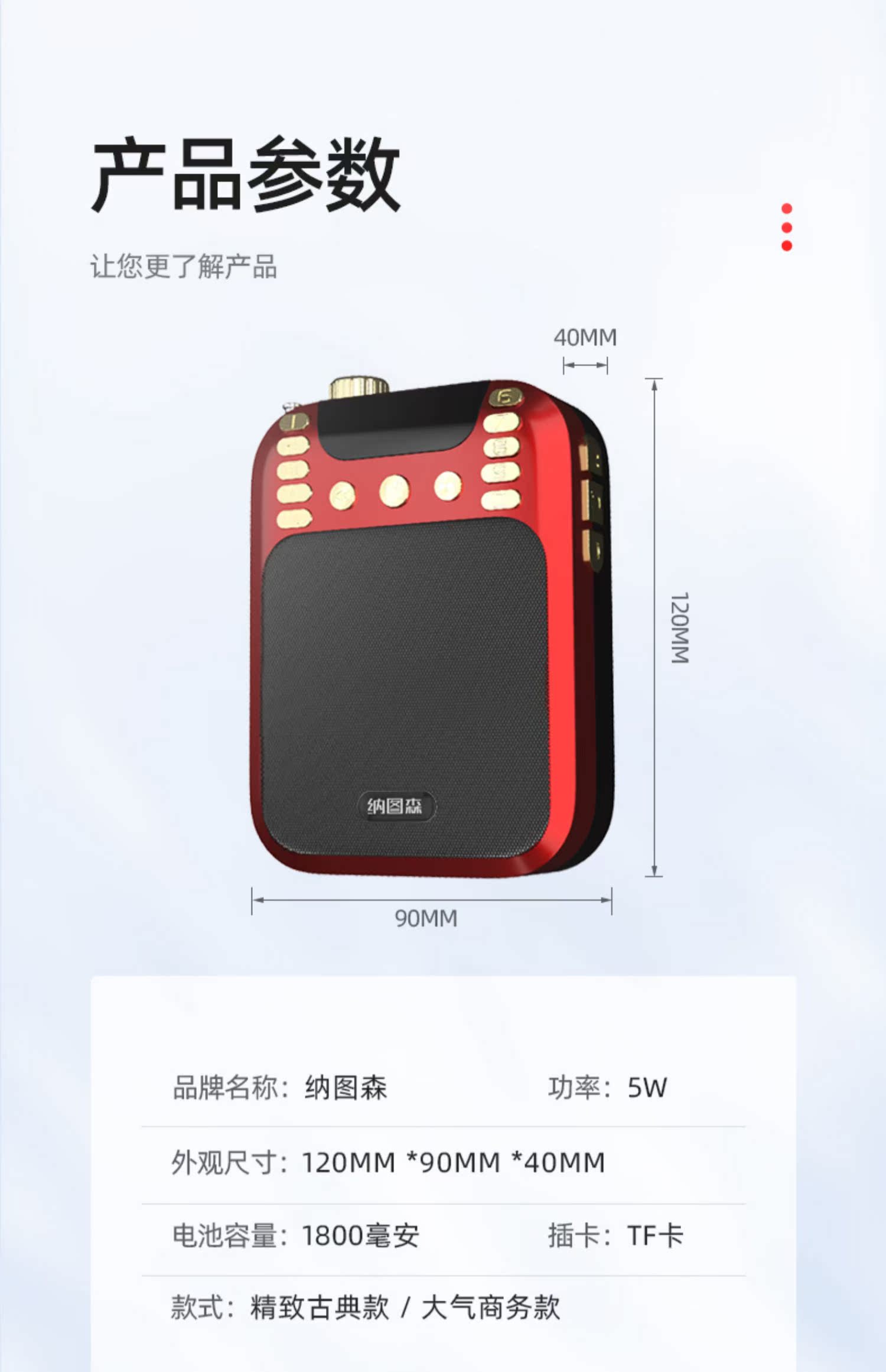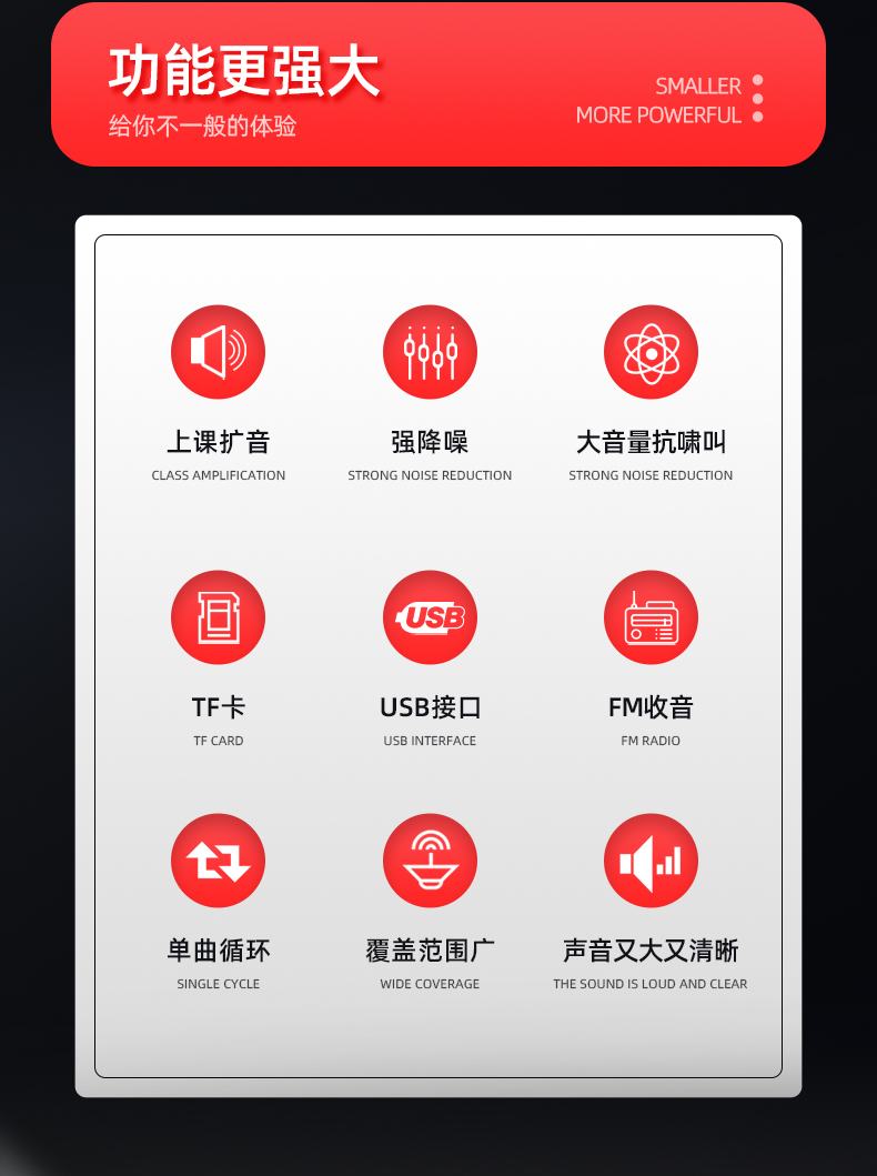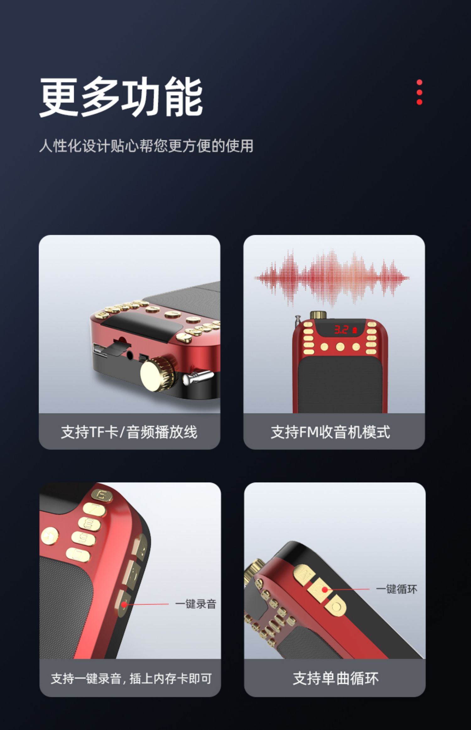 【全国包邮】【赠运费险】多功能蓝牙设计,大功率音质好,超大音量,覆盖面积广,不伤嗓子,经典小巧的外观,专为教学,导游,以及宣传等场合设计,抓紧抢购吧!