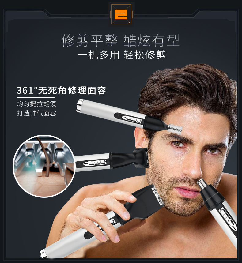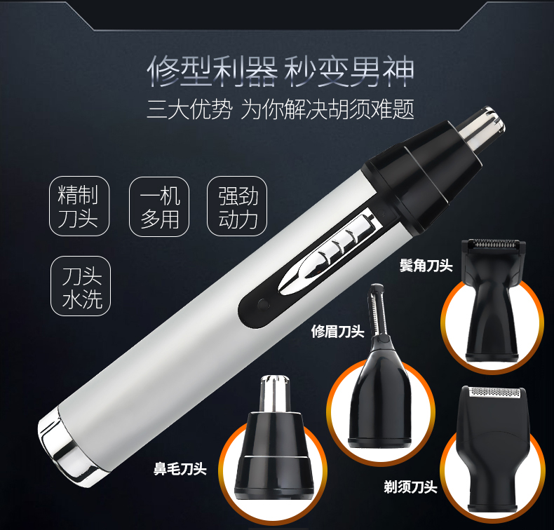 【送四个刀头】鼻毛修剪器,优质可水洗刀头,立体弧形刀头设计,贴合鼻孔舒适修剪,智能防夹须设计,360度无死角修理面容,强劲动力,一机四用,持久耐用,女神也可以用来修剪眉毛哦。【赠退换运费险】