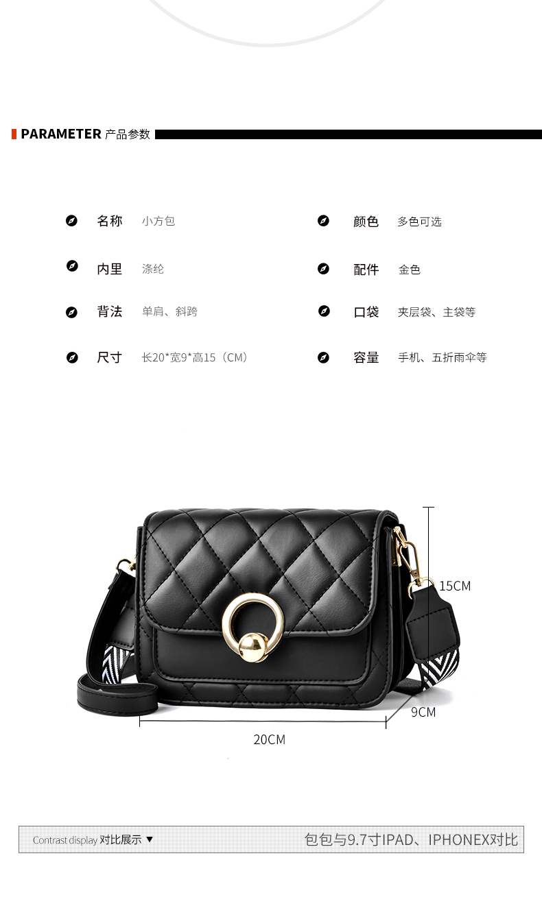 四色可选网红菱格单肩包,防滑耐磨,舒适皮料,双条肩带,自幼随心搭配!