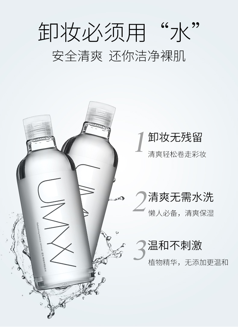 【送2片面膜!】清新净透卸妆水500ml,温和卸妆不刺激,清爽不粘腻,温和不辣眼,保湿滋润,轻松卸除妆容,一瓶=眼唇+面部卸妆+爽肤水,敏感肌也可用!
