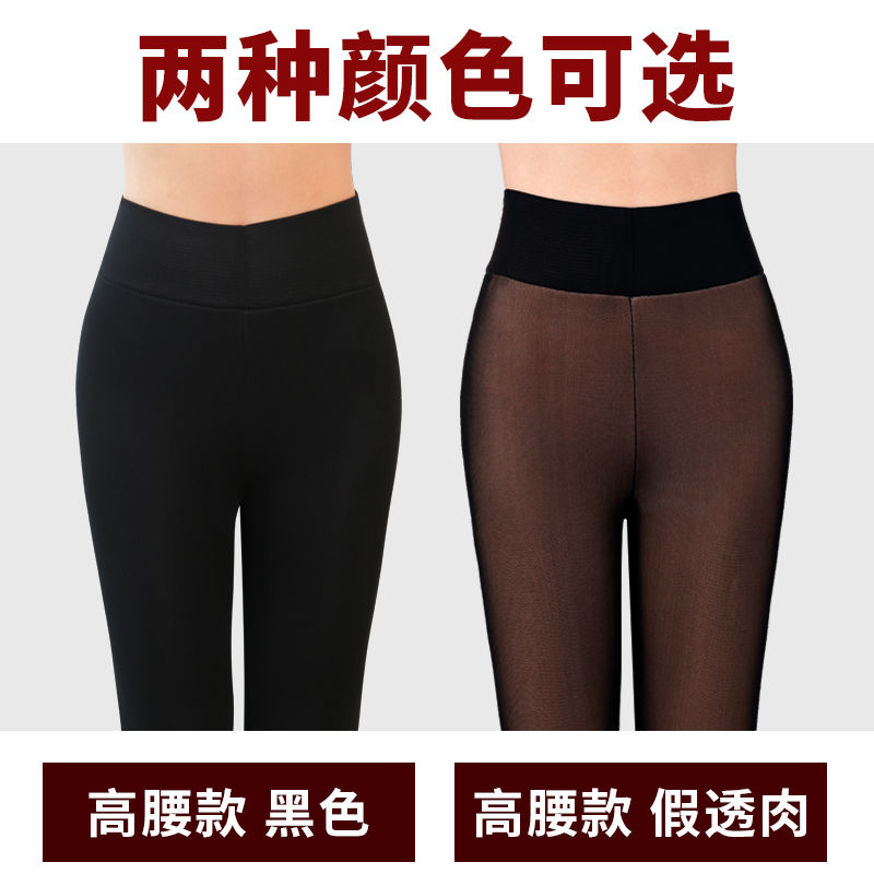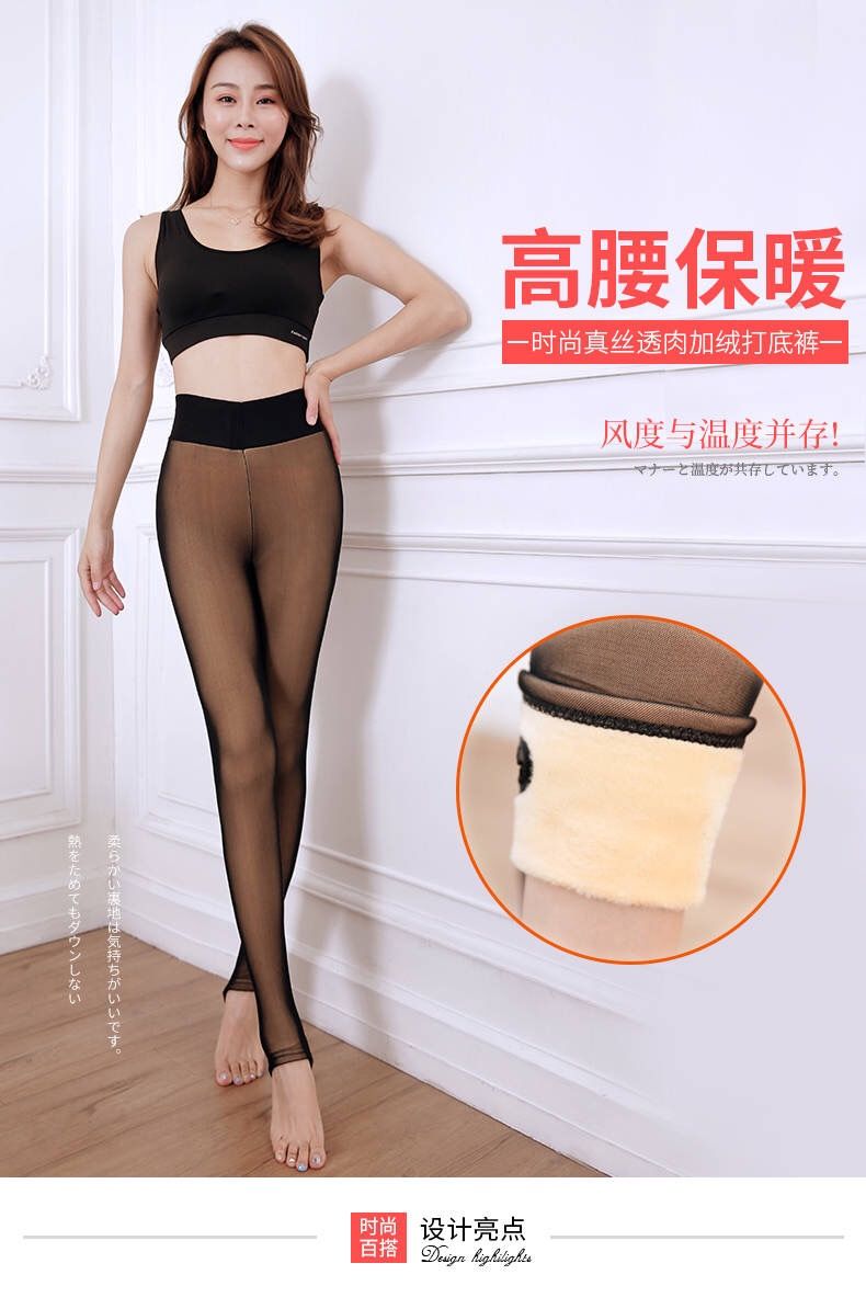 秋冬加绒假透肉网纱打底裤女,外穿高腰防勾丝大码,加厚保暖踩脚裤子。