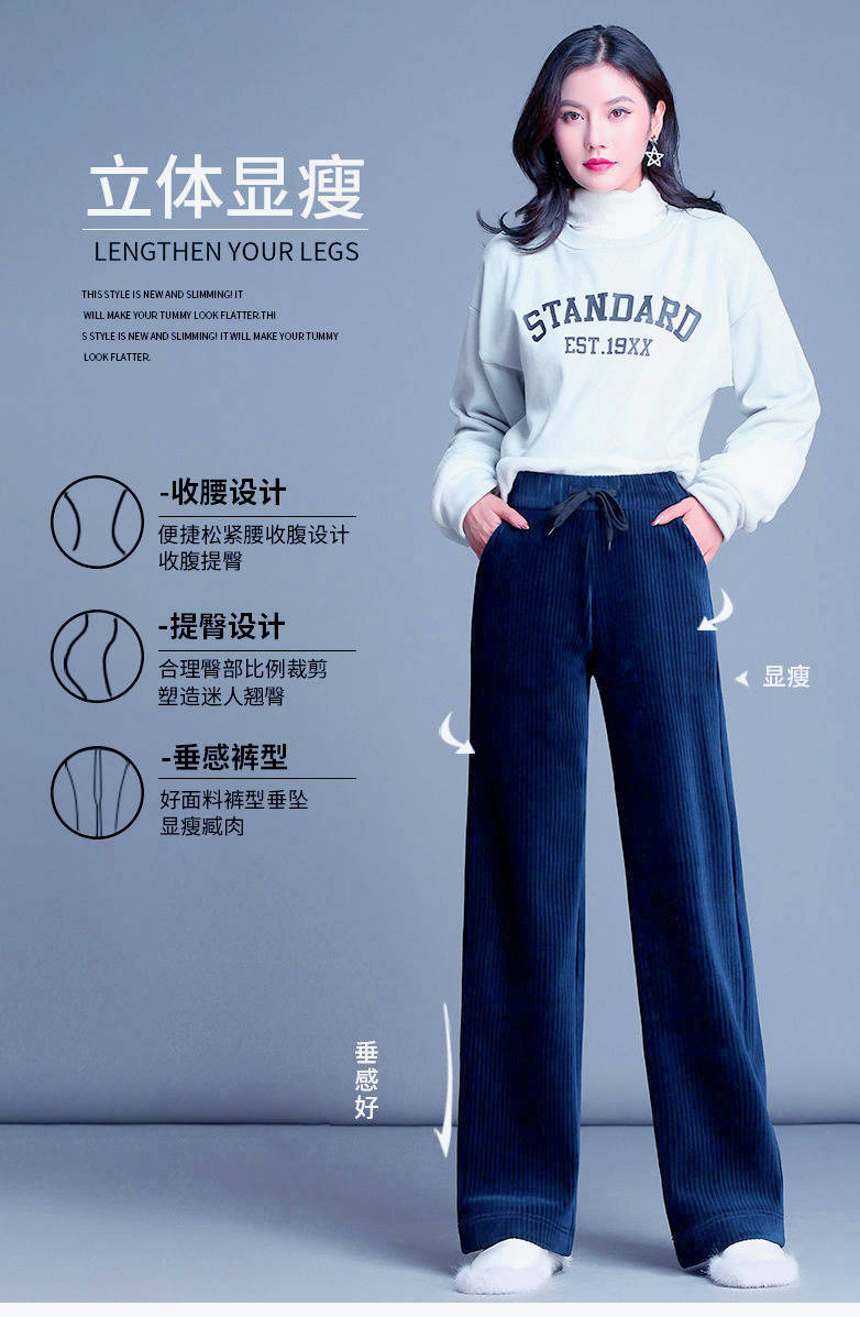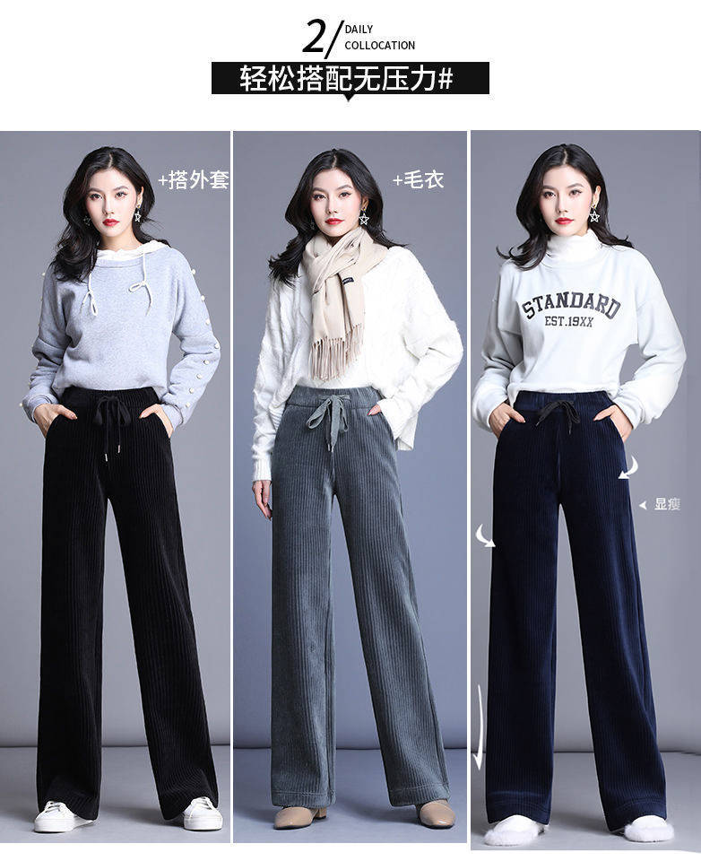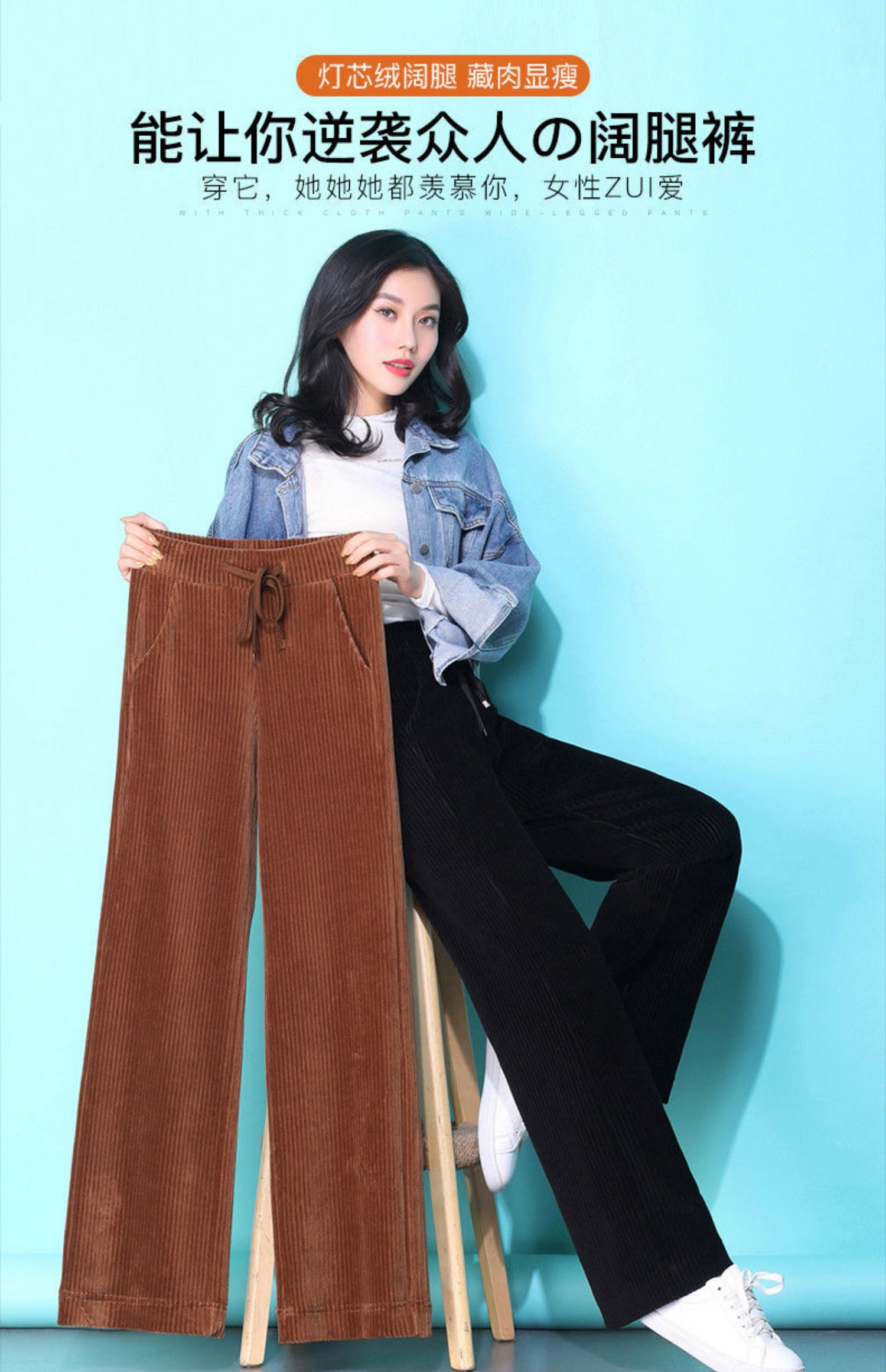 女士加绒秋冬款灯芯绒阔腿裤,时尚百搭休闲超有型,搭配潮流,时尚百搭,简约而不简单!【七天无理由退换】