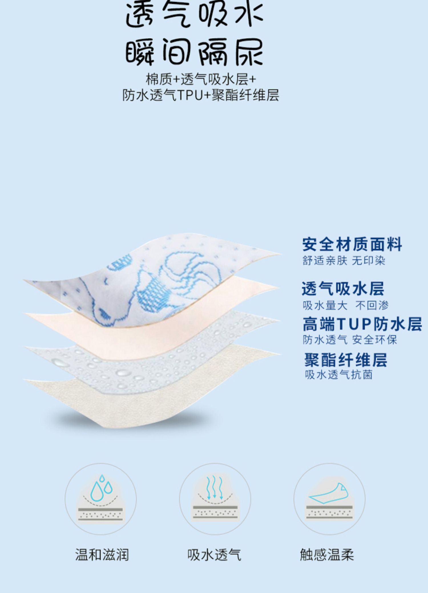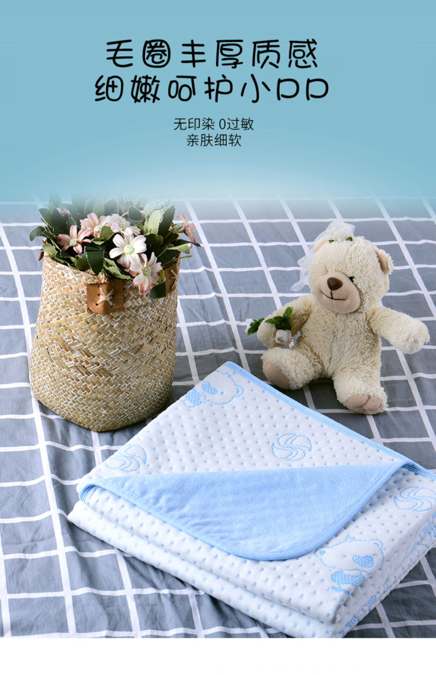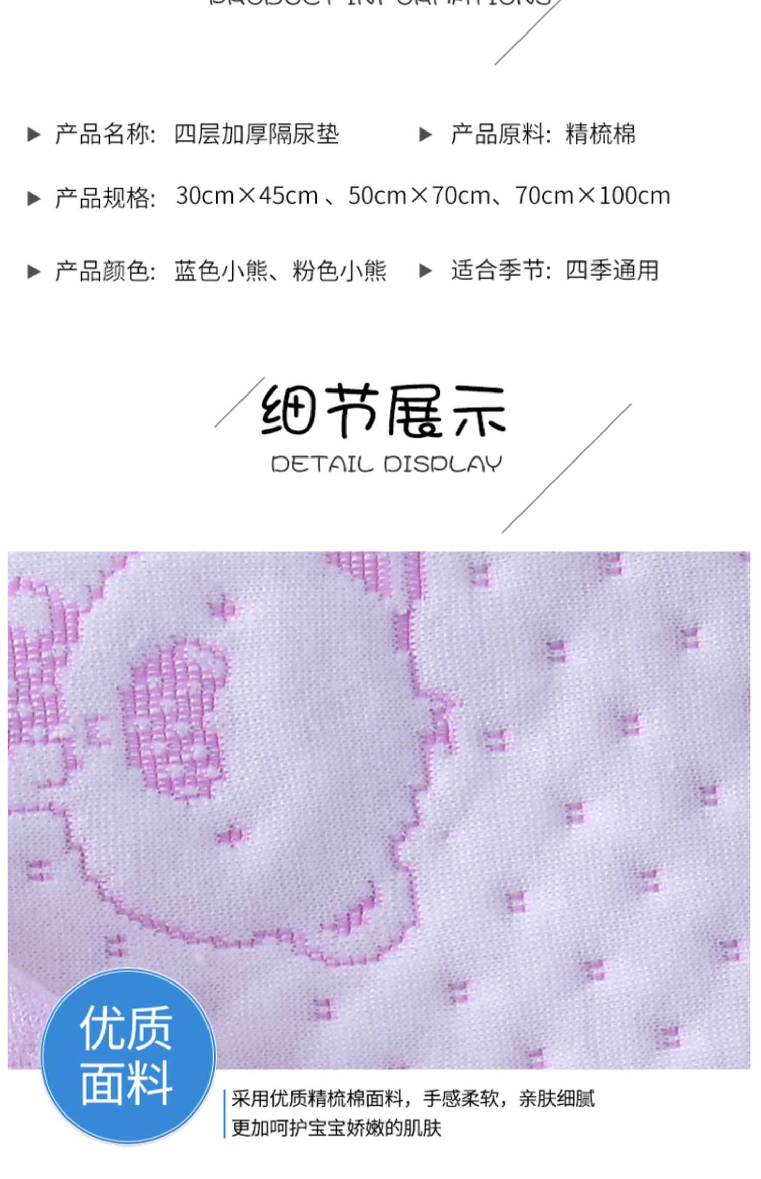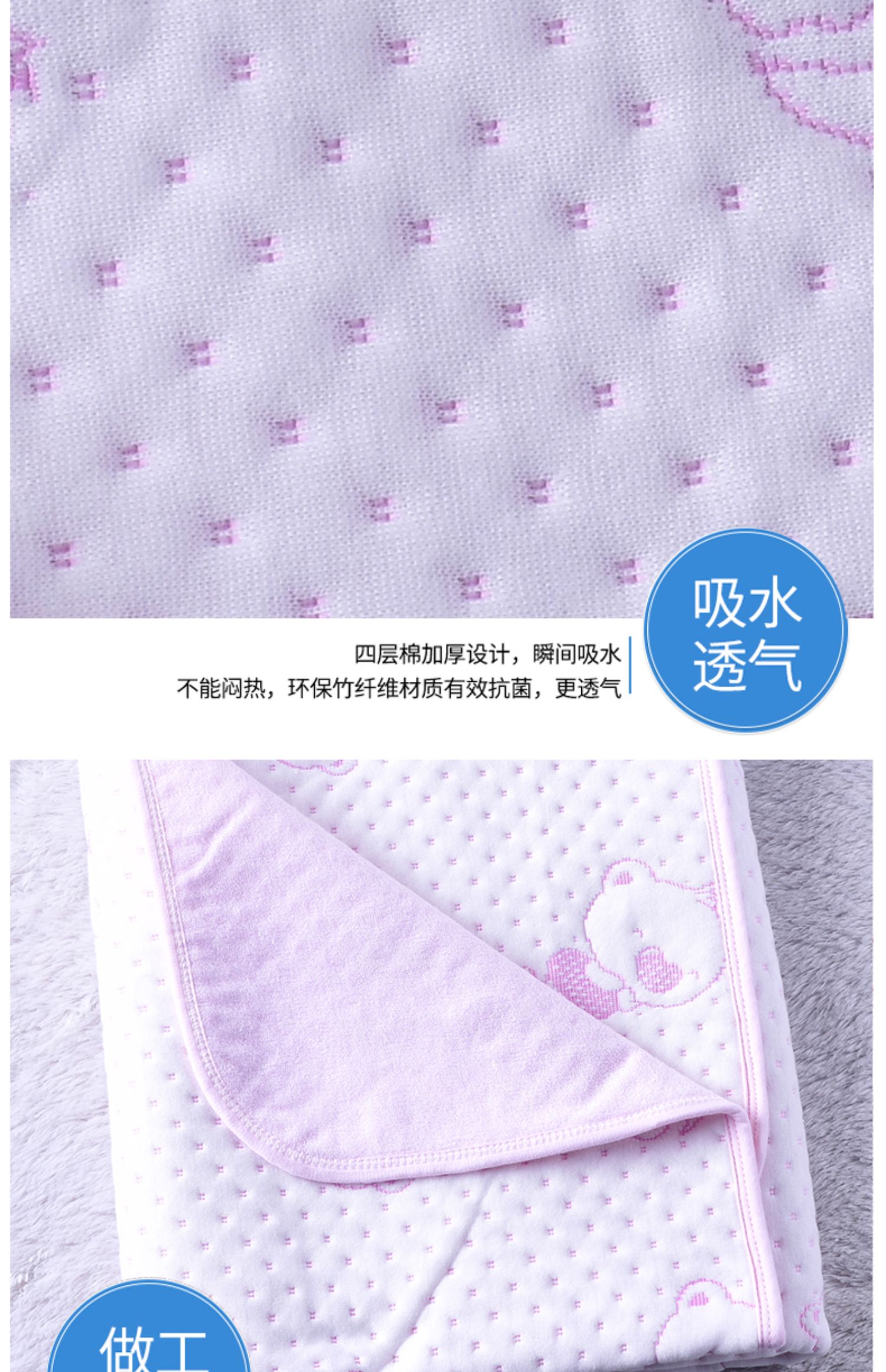 【珂梦祺隔尿垫】四层加厚绵柔,瞬间吸水,抗菌防滑,亲肤倍柔,可水洗不掉色,呵护宝宝的娇嫩肌肤,如同妈妈的亲切抚摸,速来囤货吧!