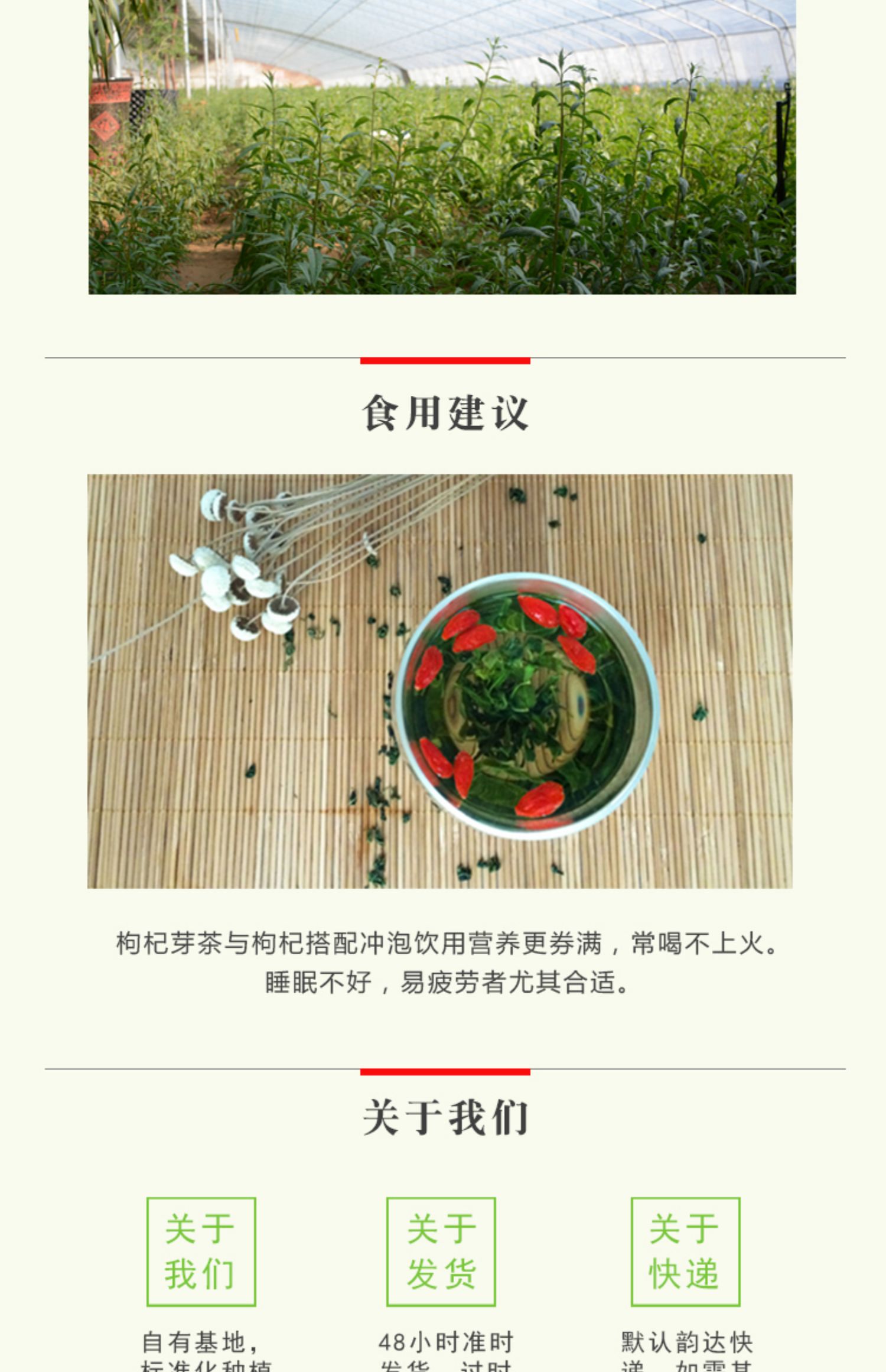 天景山枸杞芽茶。精选地道宁夏枸杞鲜嫩芽精致而成,细细体味,味觉唇齿留香,神经气宁,实乃茶中珍品。【赠运费险】