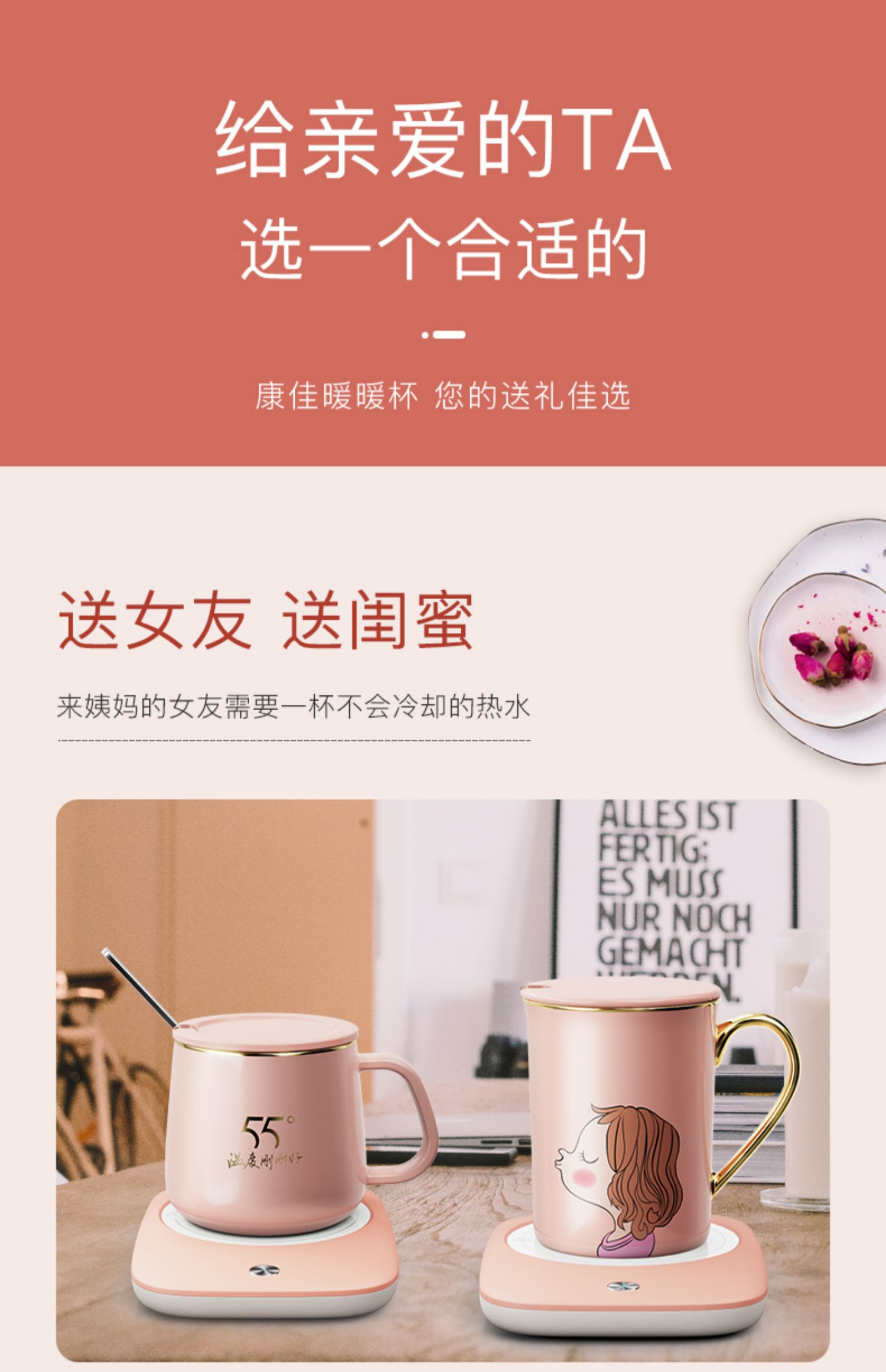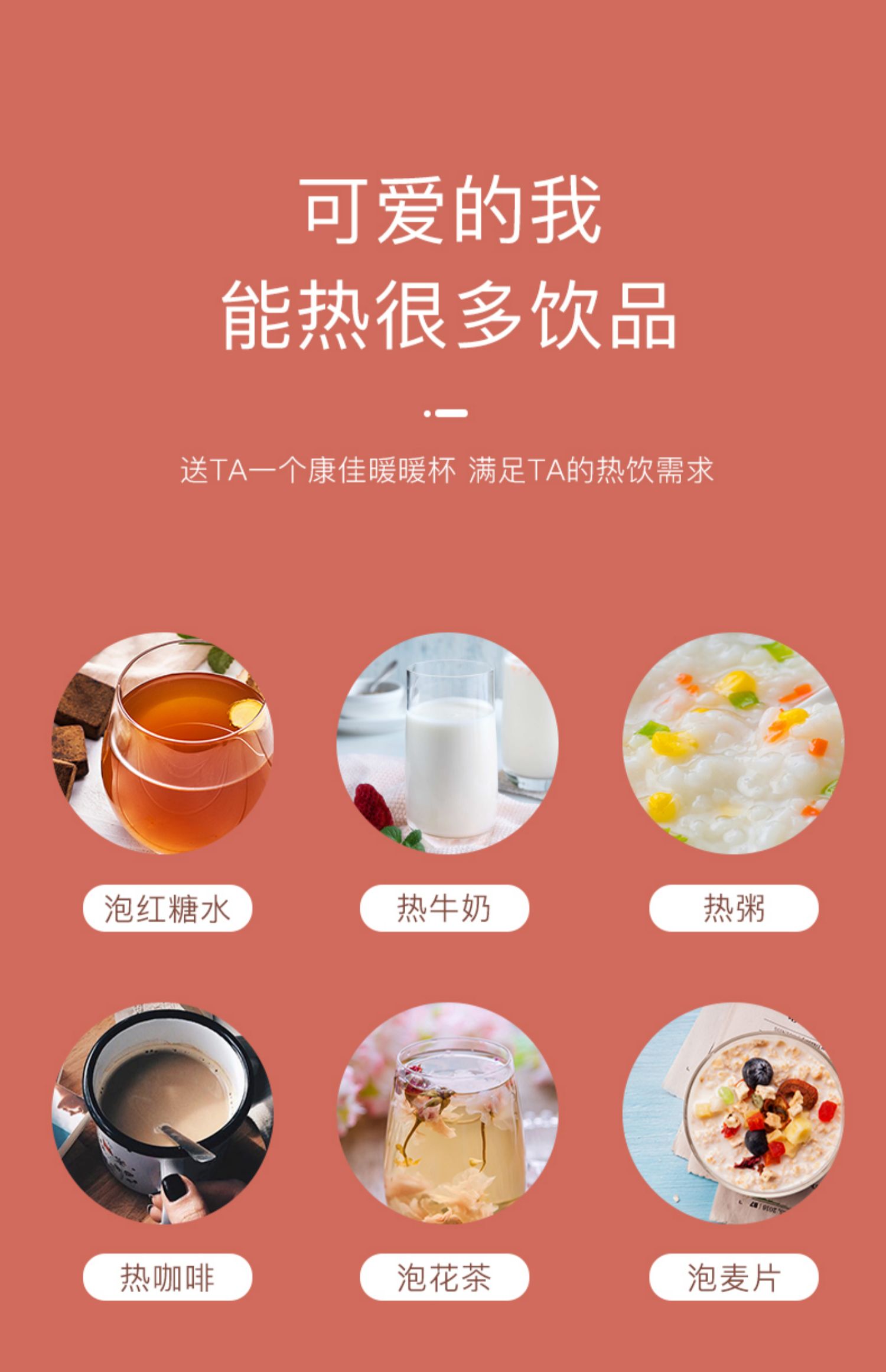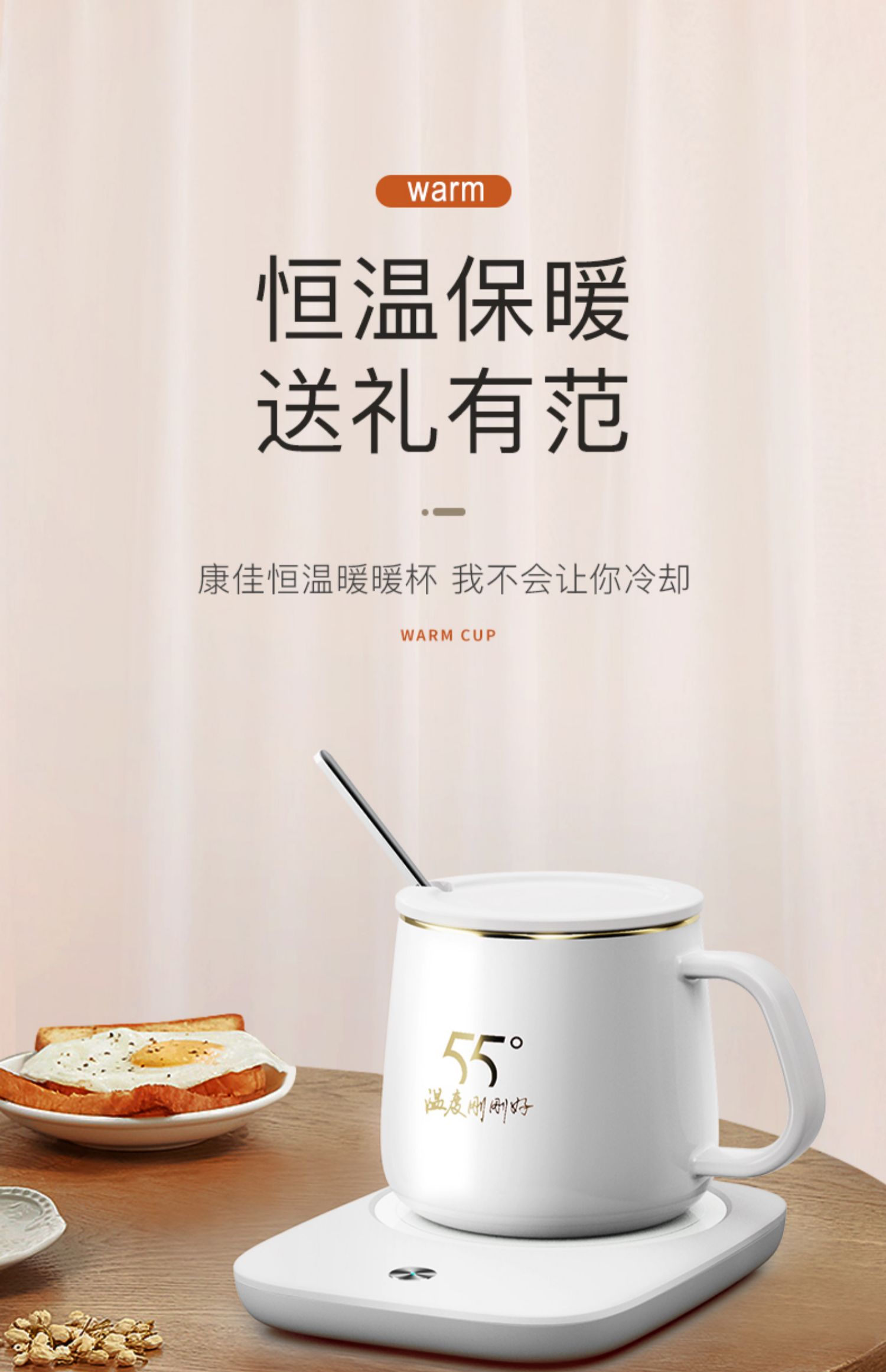 康佳品牌,自动微重力开关,触摸双操作,三种温度可调,低功率安全发热,空杯不干烧,恒温55度!泡红糖、热牛奶、泡蜂蜜,一键恒温,操作方便又省心!~