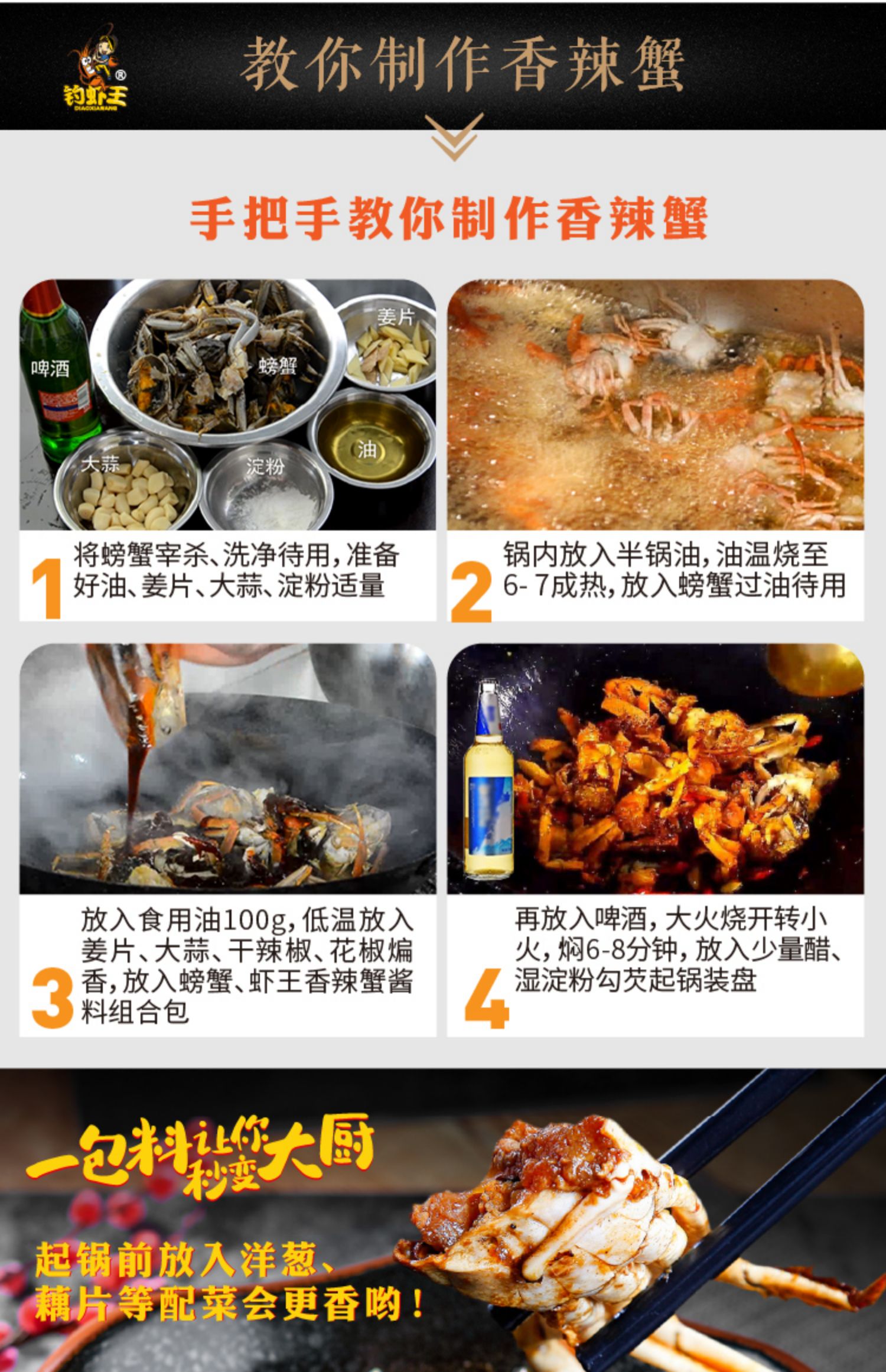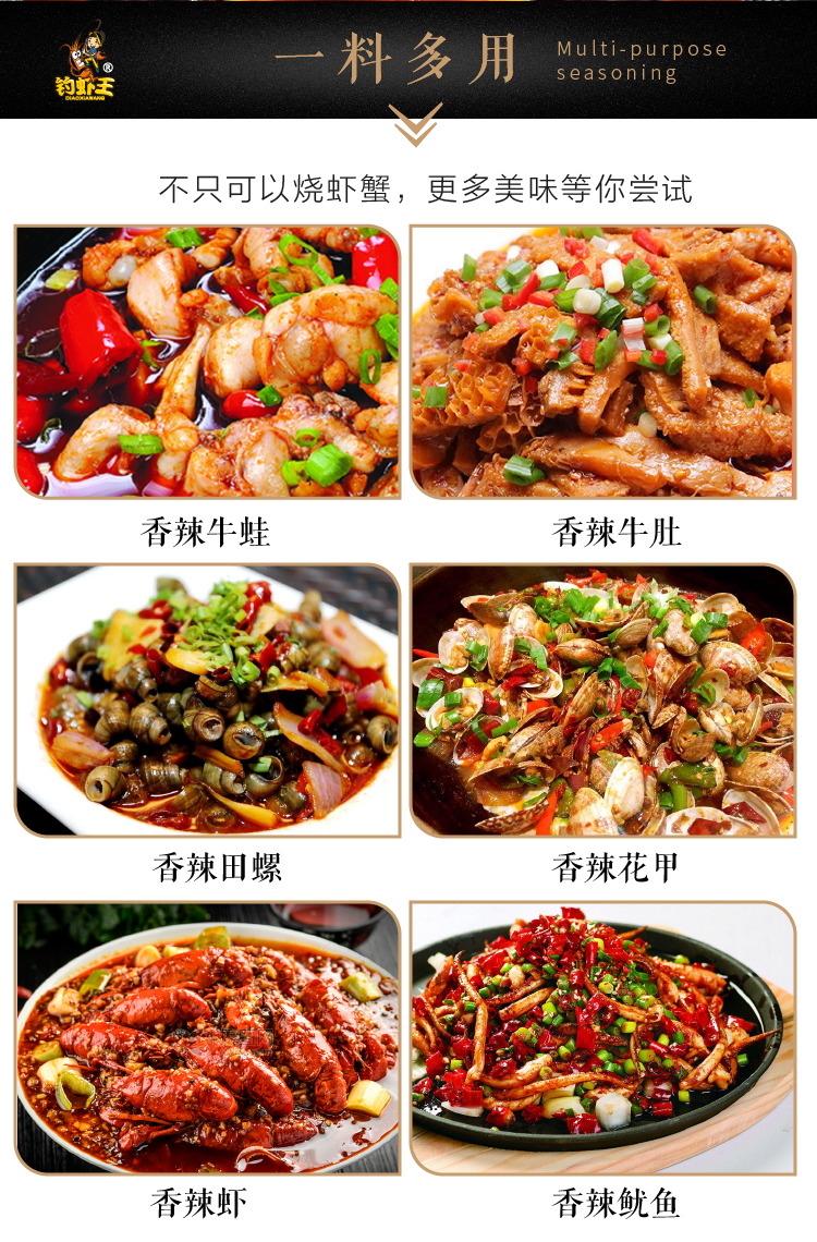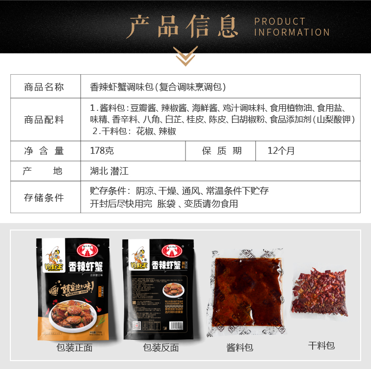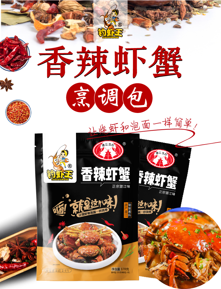秘制香辣蟹调料包178g,天然香辛料,香味浓郁,麻辣鲜香,炒龙虾、香辣蟹、香辣啤酒虾都美味,一料多用,香味十足,辣而不燥!